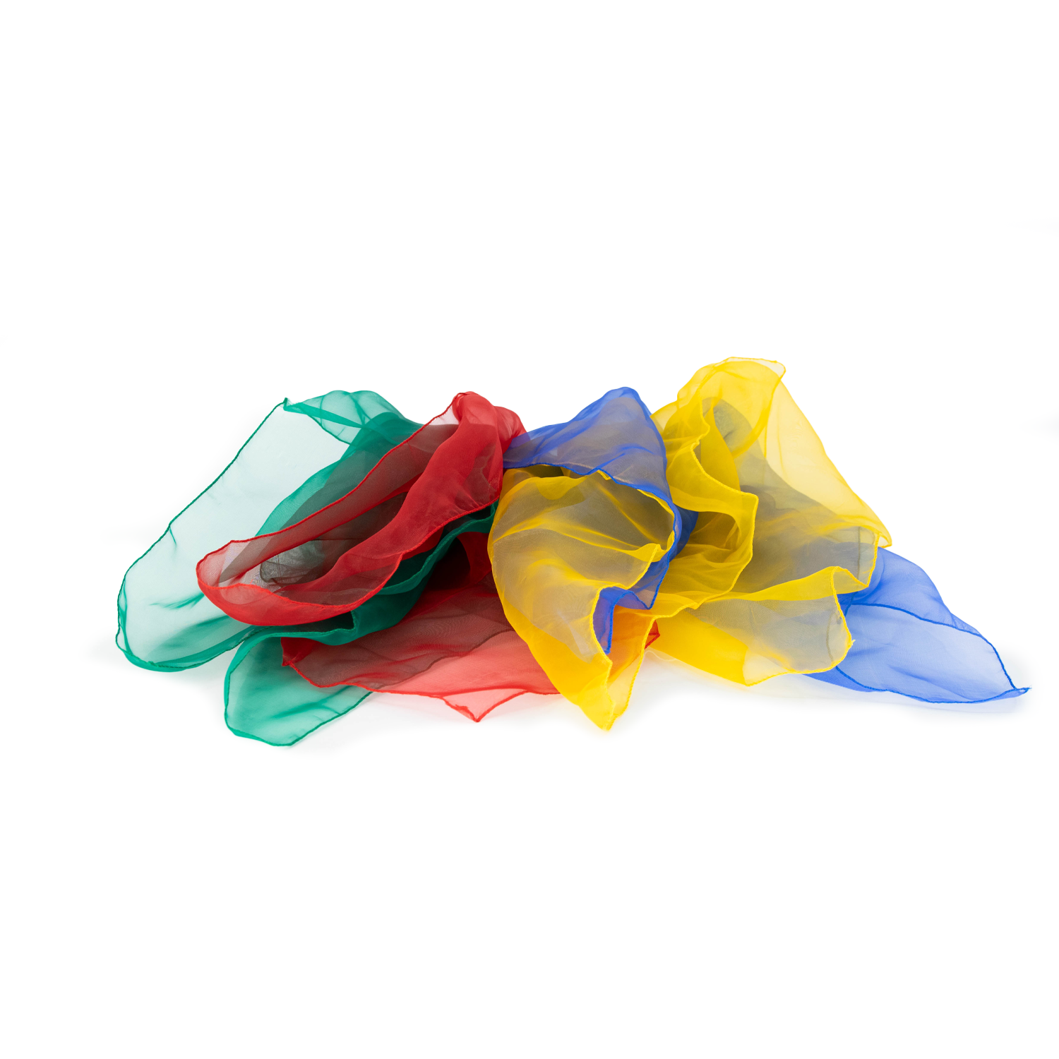 qualitativ hochwertigen Jongliertücher in 4 Basic-Farben - Rot, Grün,