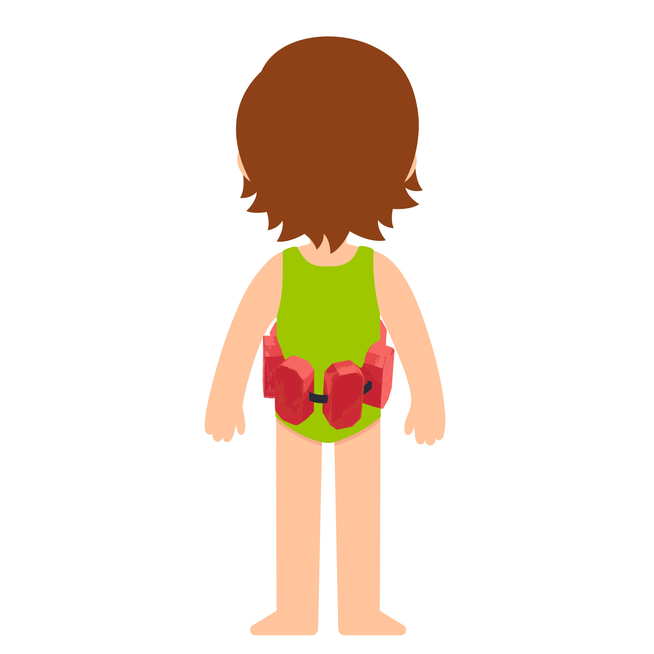 Es gibt zwei Varianten: 15–30 kg (Kinder ca. 2–6 Jahre) und 30–60 kg (Kinder ca. 6–12 Jahre). Hinweis: Alters- und Gewichtsangaben sind Orientierungswerte, wichtig ist immer, dass der Schwimmgurt sicher sitzt.
