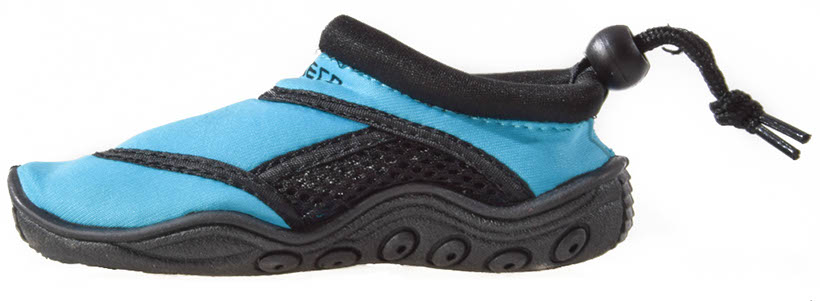 Surf- und Badeschuhe aus Neopren, mit Netzeinsatz und rutschfester Gummisohle.