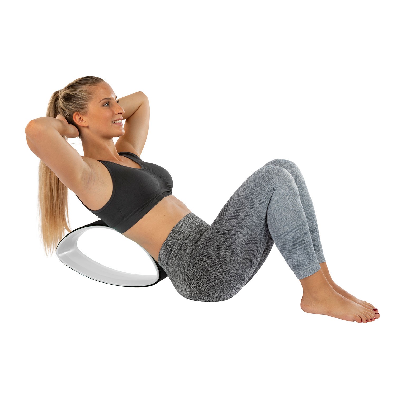 Vielseitiges Yoga-Rad in ovaler Form: Unterstützt Rückbeugen, Mobilisation und Dehnung – die glatte Oberfläche bietet kontrollierten Kontakt für Yoga, Functional Training und Physiotherapie (unter Anleitung).