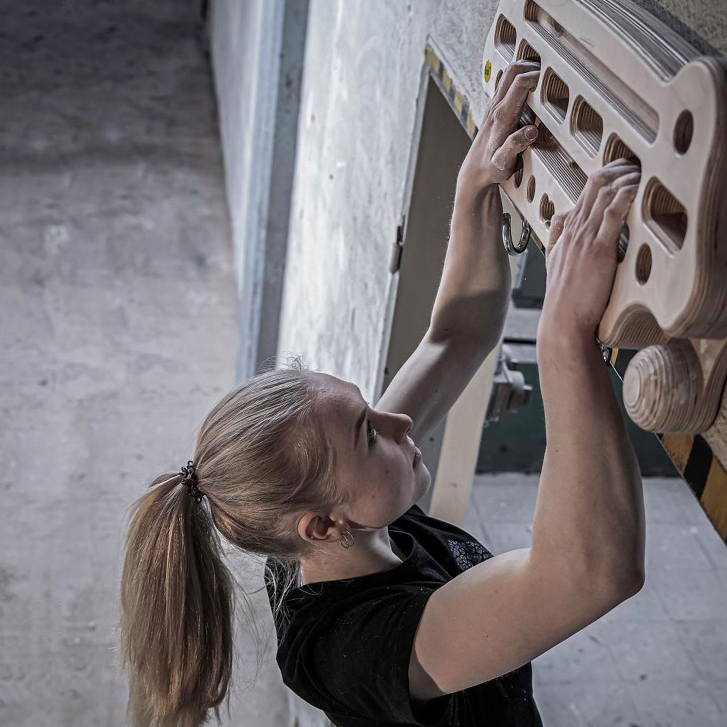 Mit dem Trainingsboard werden Finger-, Arm- und Oberkörperkraft trainiert.