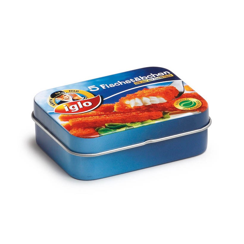 5 knusprige Fischstäbchen von Iglo aus Holz in schön gestalteter Dose zum Spielen in der eigenen kleinen Küche.