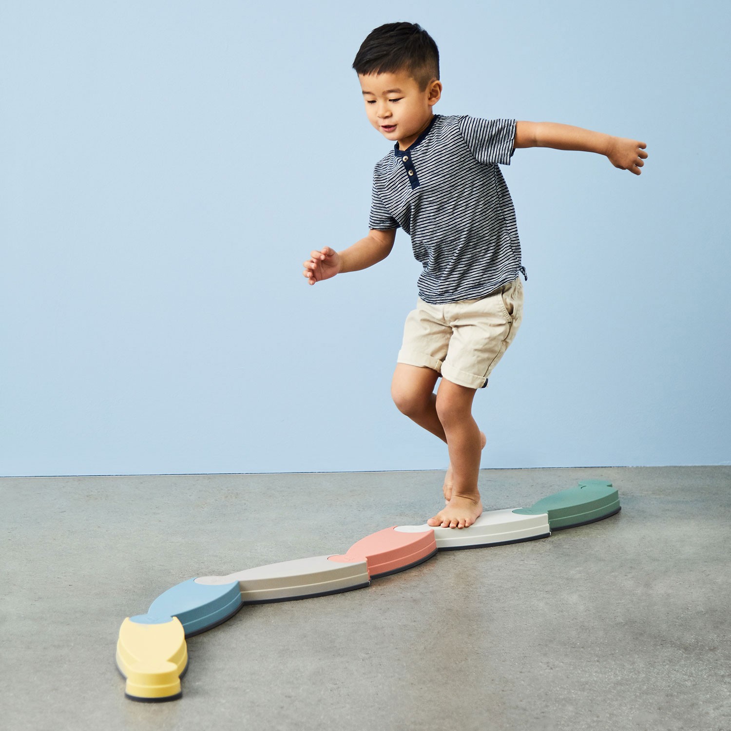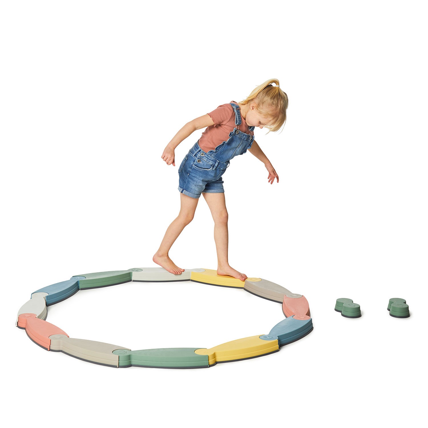 Der Fluss bietet unbegrenzte Möglichkeiten zum Bauen von Balancierstrecken. Die Elemente sind leicht zusammenzustecken und gleichzeitig so flexibel, dass nur die Phantasie den Lauf des Flusses bestimmt.