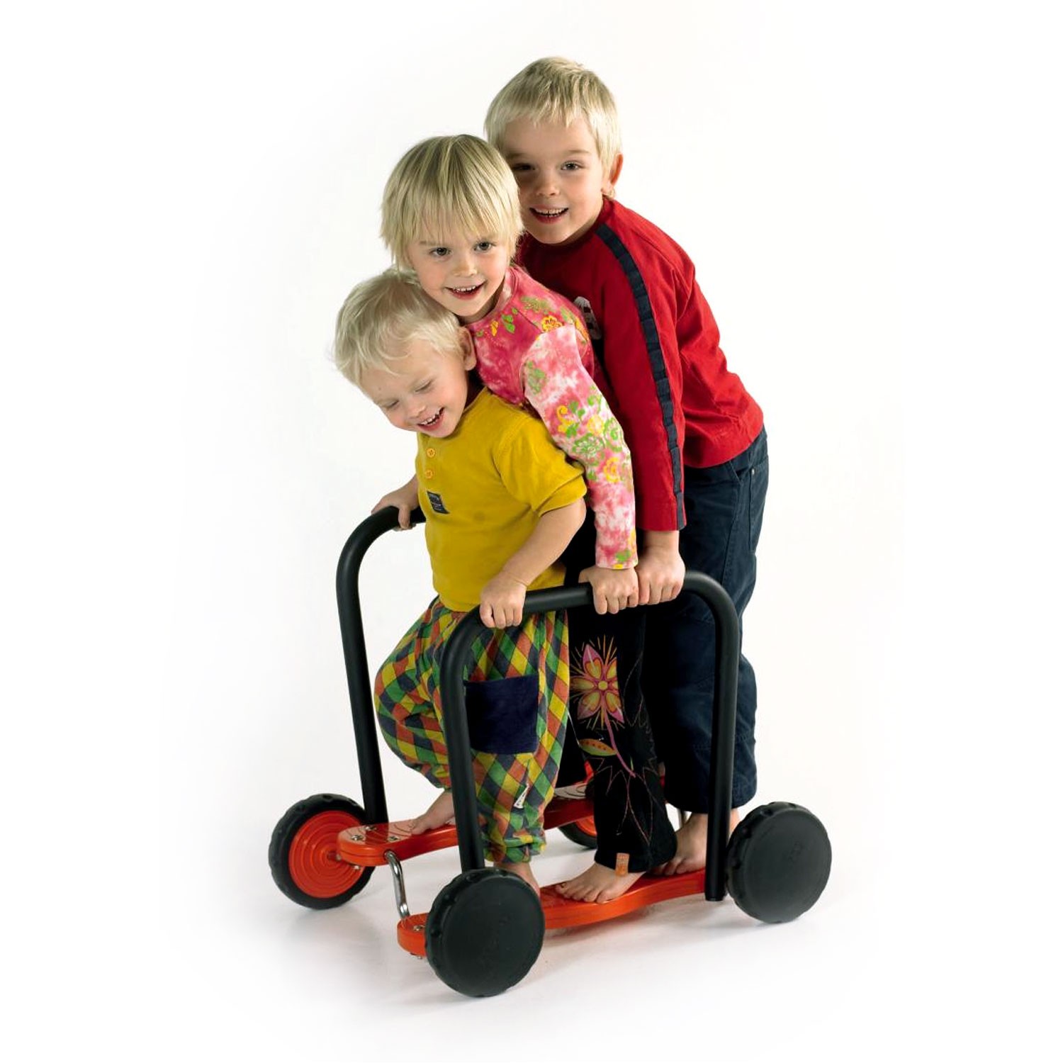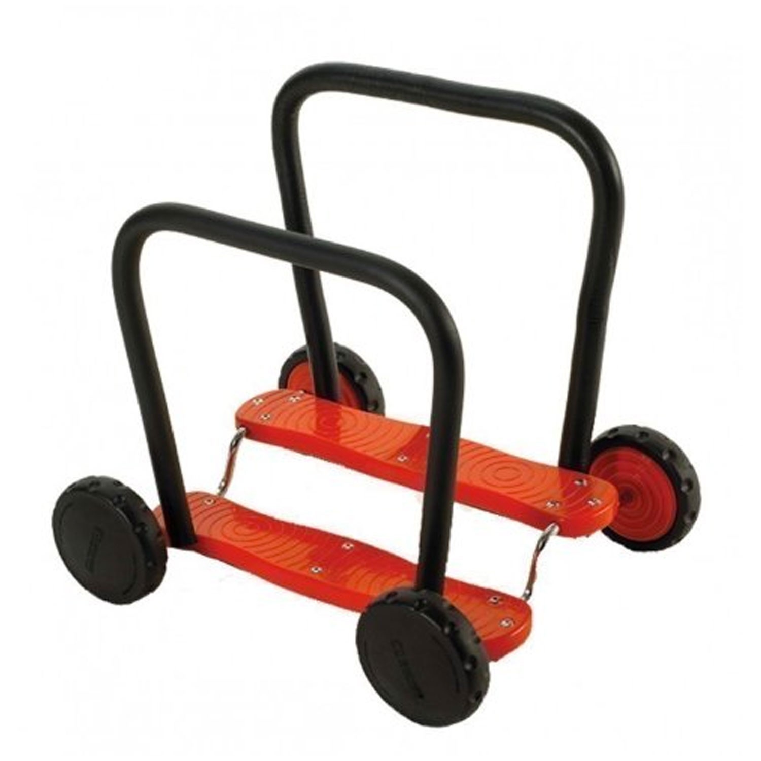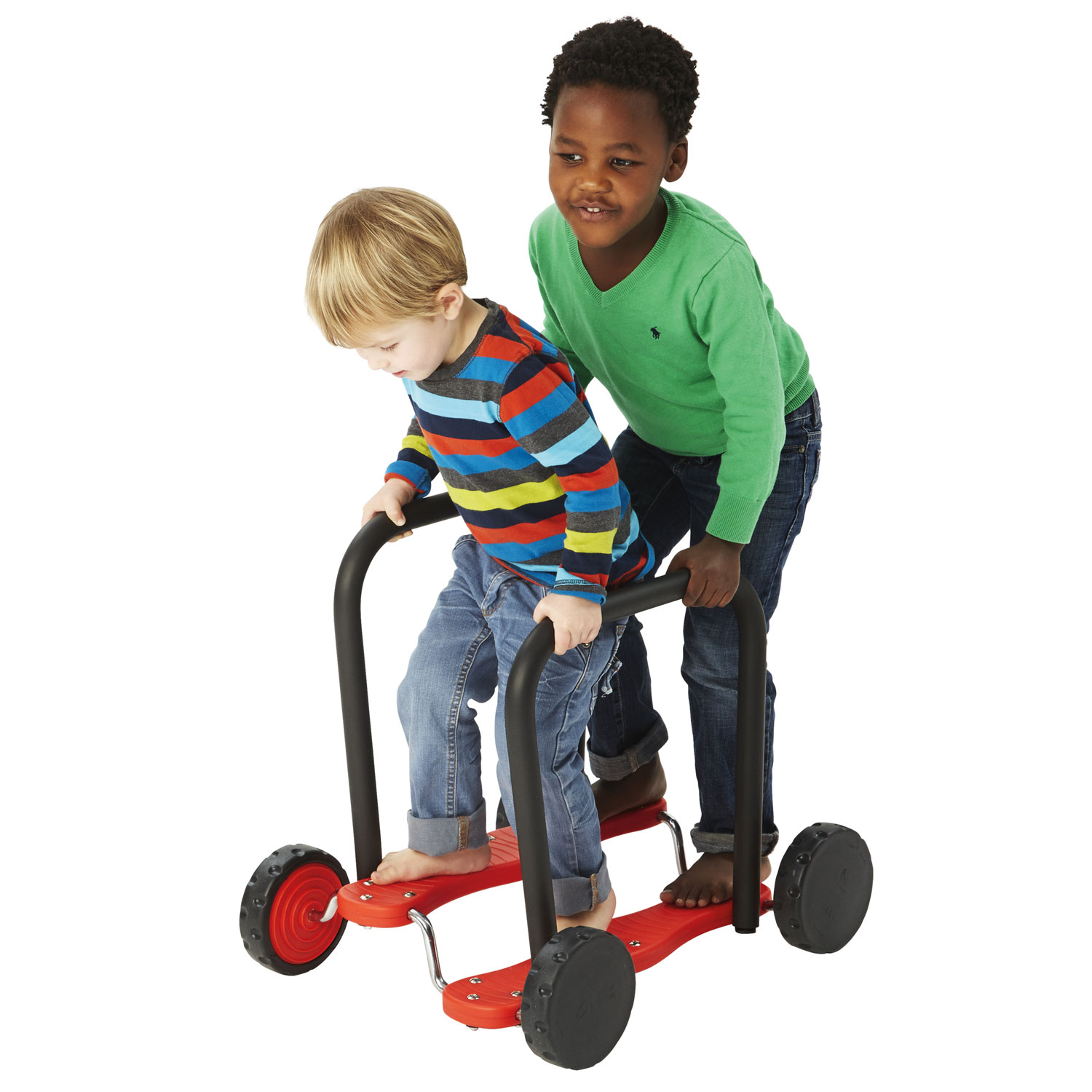 Der Go Go Bus von Gonge ist eine große Herausforderung an die Gleichgewichtsfähigkeiten und den Teamgeist. Wie Fahrrad fahren ohne Lenker und Sattel: Im aufrechten Stand gilt es die Pedalbretter zu treten, die sich auf und ab bewegen und das Spielgerät nach vorne bringen. Die Besonderheit beim Bus ist die Koordination mit mehreren Mifahrern. Dabei ist es unerlässlich, dass das Gleichgewichtssystem und die Reaktionsschnelligkeit trainiert werden.