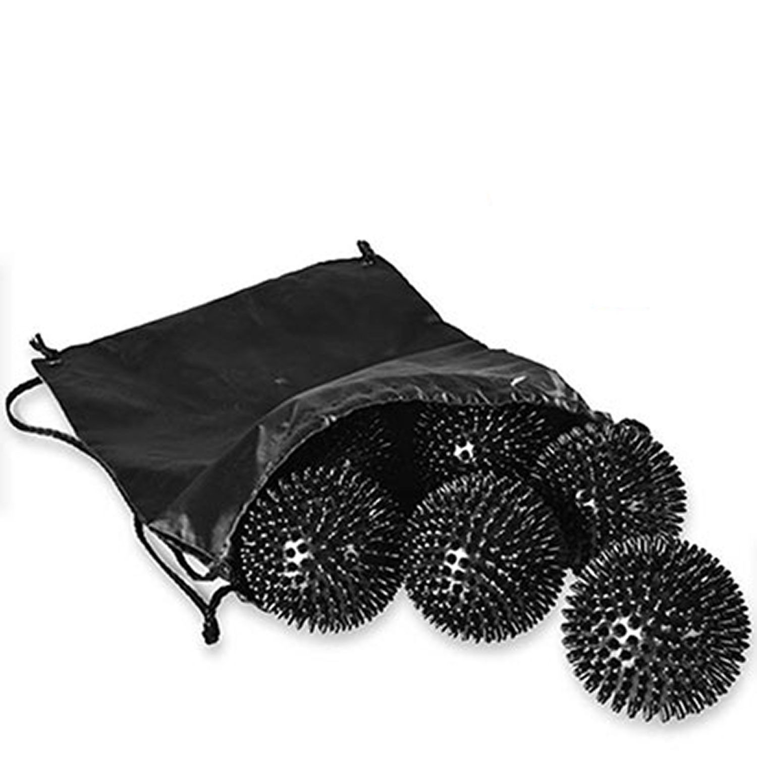 6 schwarze (10 cm Ø) Igelbälle, 1 Aufbewahrungsbeutel