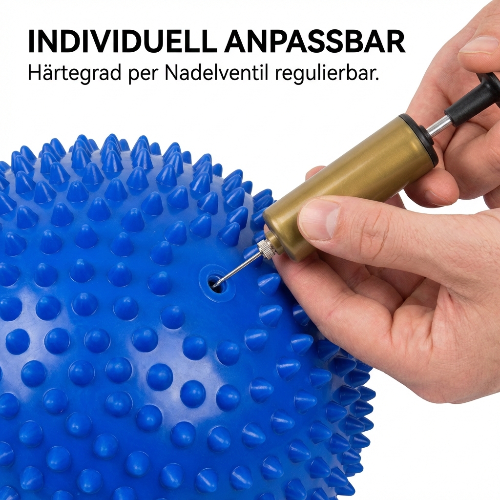Die halben Igelbälle habe ich zur unterstützenden Behandlung meiner Polyneuropathie bestellt. Sehr erfreut war ich, dass sie schon einen Tag nach Bestellung bei mir in München ankamen. Probleme bereitet mir allerdings die Härte der Noppen und des gesamten Halbballs. Ich kann mich nur mit Hilfe von mehreren Tüchern auf die Halbbälle stellen, weil sie mir sonst zu wehtun. Meine Frage ist nun, ob ich mit einen dünnen Gegenstand (z. B. Schraubenzieher) etwas Luft rauslassen kann? Herzlichen Dank im Voraus für Ihre Antwort. Karin KREUtzberg
