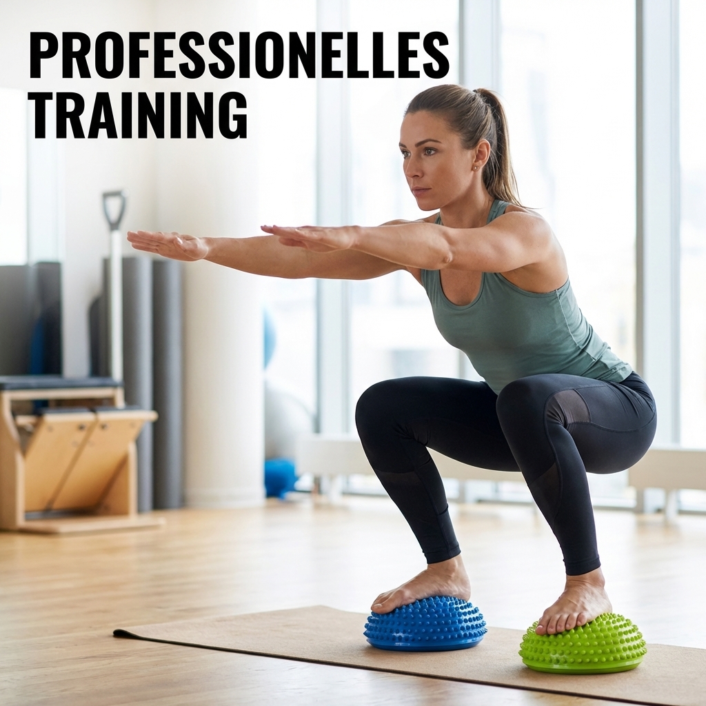Stärke deine Balance sowie dein Körperbewusstsein - mit den kleinen Halbigelbällen mit anregenden Noppen.