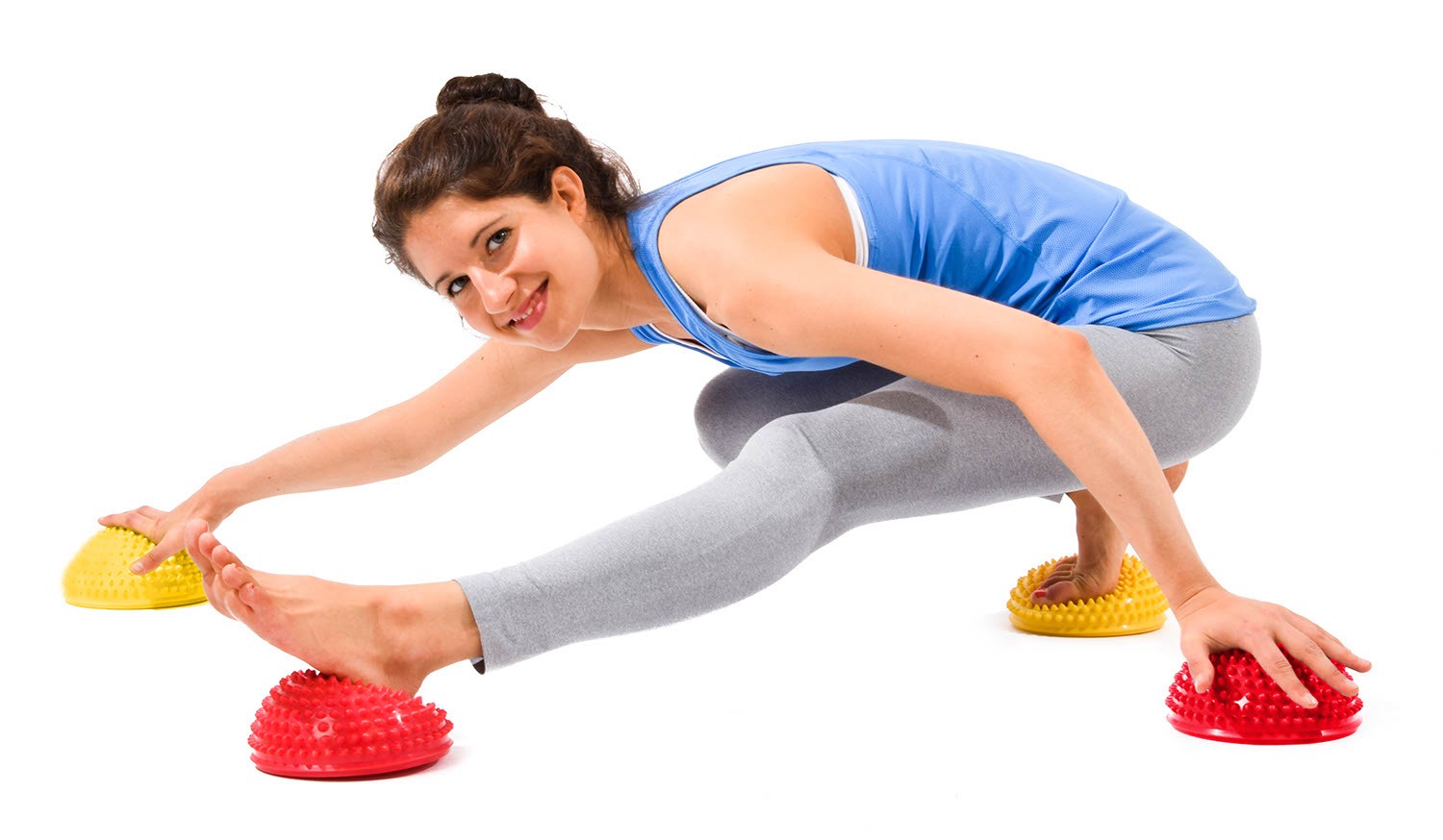 Du kannst mit dem Balance Igel (auch Stepping Stone oder Hedgehog genannt) deine Stabilität trainieren, indem du dich einfach auf das Gerät stellst. Besonders spannend wird diese Aktivität, wenn du mehrere Igel einsetzt und diese wie bei einem Barfusspfad bzw. Sinnespfad zu einem Bewegungs-Parcours zusammenstellst, so erhöhst du die Herausforderung und betonst gleichzeitig den spielerischen Charakter.