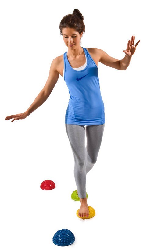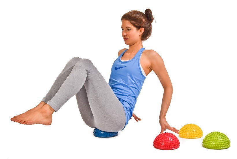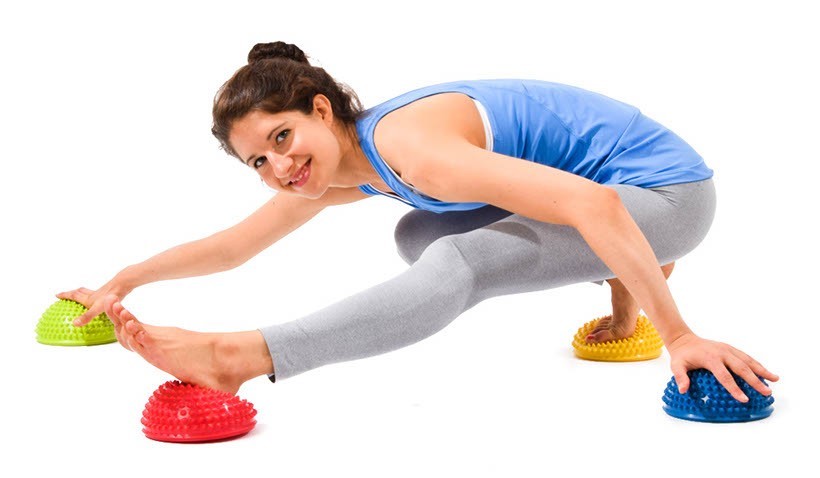 Stärke deine Balance sowie dein Körperbewusstsein - mit den kleinen Halbigelbällen mit anregenden Noppen.