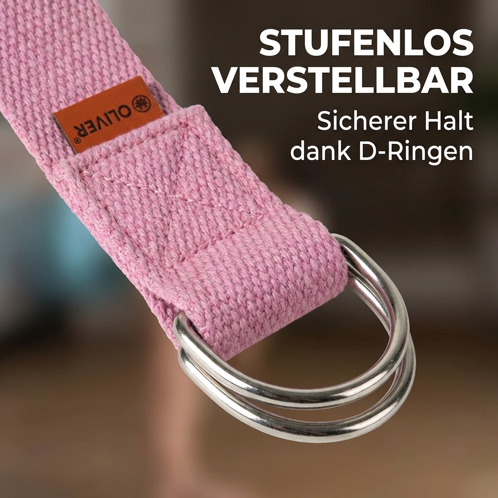 Zusätzlich kann eine Haltung mit Hilfe des Yogagurts weiter vertieft werden und du kommst deinem Ziel in Ruhe und schrittweise näher.