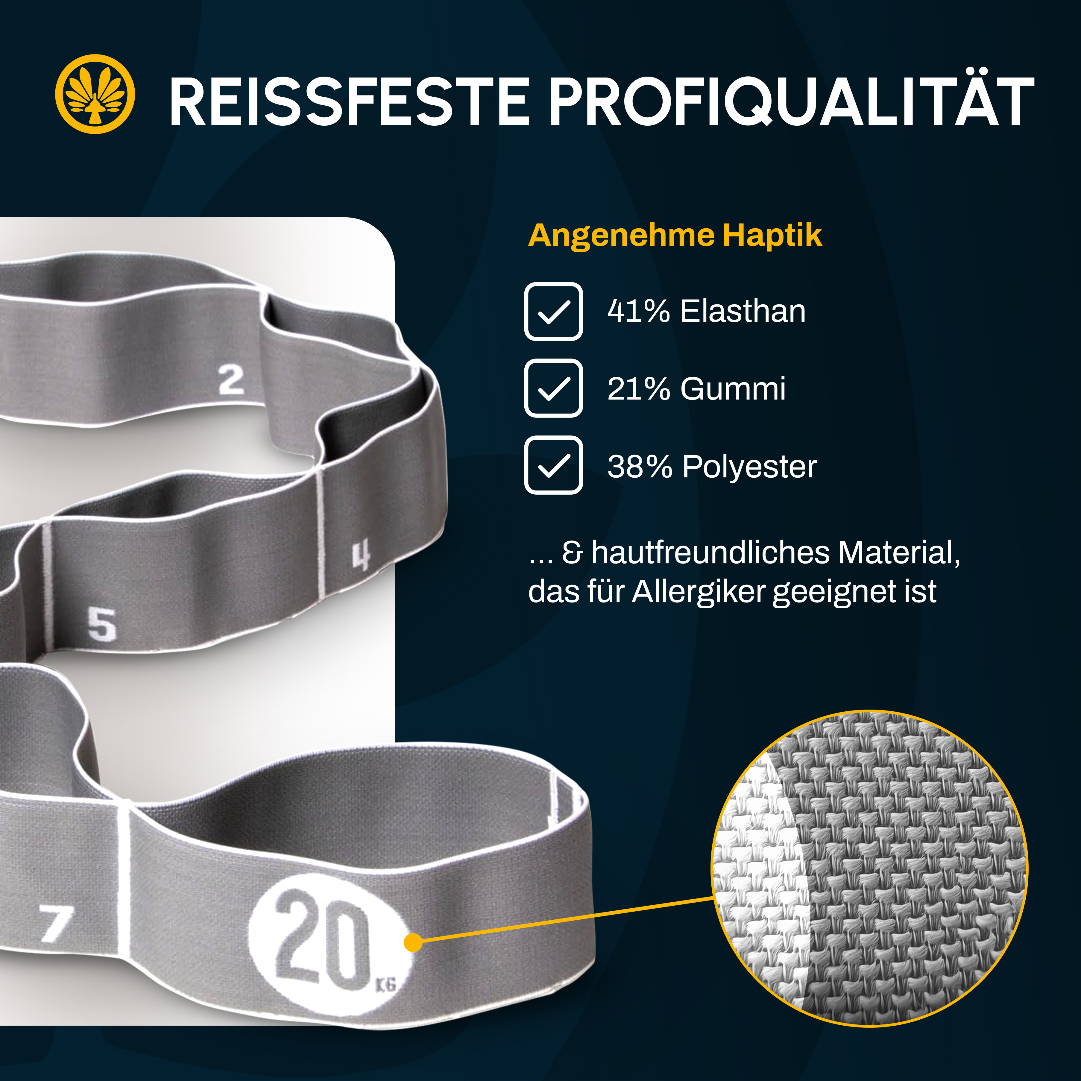 - Hautfreundliches, elastisches Textil-Material: 41% Elasthan - 21% Gummi - 38% Polyester
