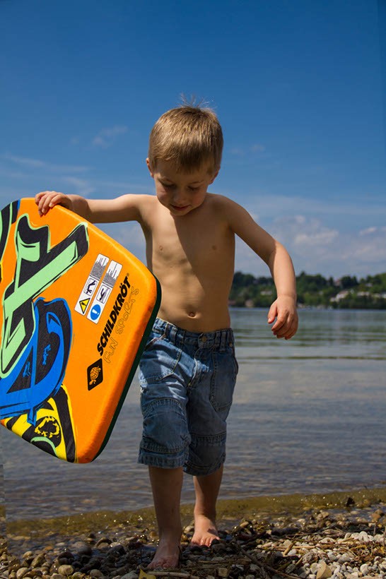 Die coolen Schildkröt Bodyboards dürfen auf keinem Badeausflug fehlen. Das Schildkröt Bodyboard Größe M in trendiger Graffiti-Optik (orange-blau-grün-gelb) ist der ideale Begleiter der jüngeren Kids für Strand, Meer aber auch Schwimmbad. Das Brett ist 69 x 45 x 4,5 cm groß, hat einen EPS Schaumstoff-Kern und ist umhüllt mit schützendem Nylongewebe, dazu gehört der "Fangriemen" ca. 90cm mit dem du das Board am Hand- oder Sprunggelenk mit dem Klettband fixieren kannst.