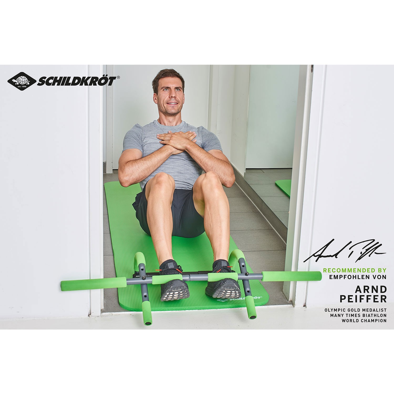 Für Klimmzüge ist ein Türrahmen mit einer Breite von max. 95 cm und einer Tiefe von 12-24 cm ideal (verstellbar).