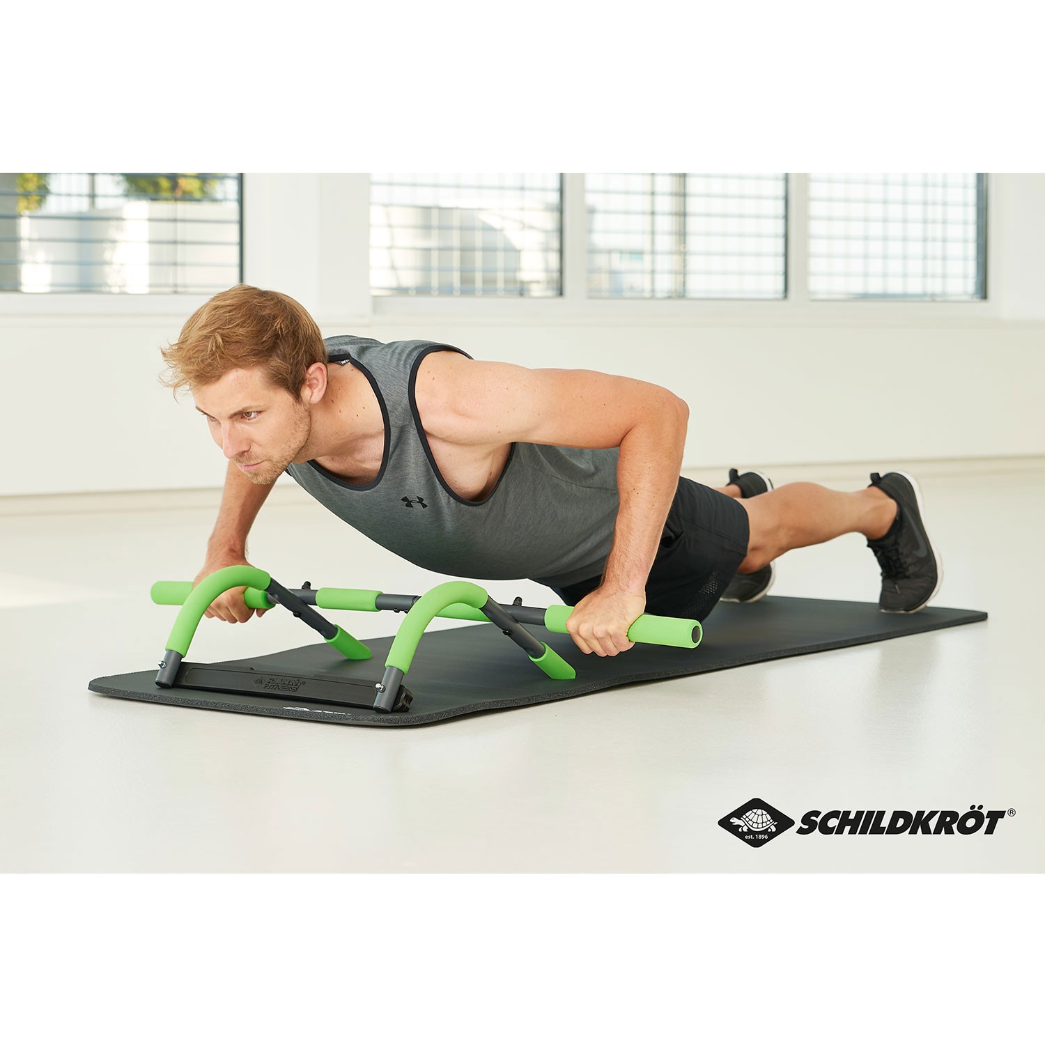 Praktisches und vielseitiges Heimfitnessgerät für ein optimales Training des Oberkörpers, sowie zur Stärkung der Bauch-, Rücken und Armmuskulatur. Ideal für Klimmzüge, Sit-Ups, Dips und Liegestütze.