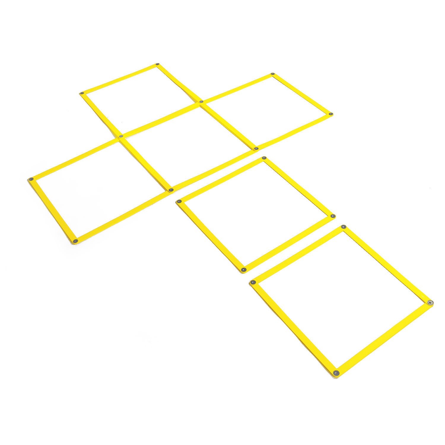 Hier erhältst du sechs Elemente, welche auch mit weiteren Elementen der Speed Ladder ergänzt werden können. Sie bilden bereits eine Koordinationsleiter mit 6 Kästchen, können aber auch einzeln eingesetzt werden um beispielsweise die Sprungkraft zu trainieren.