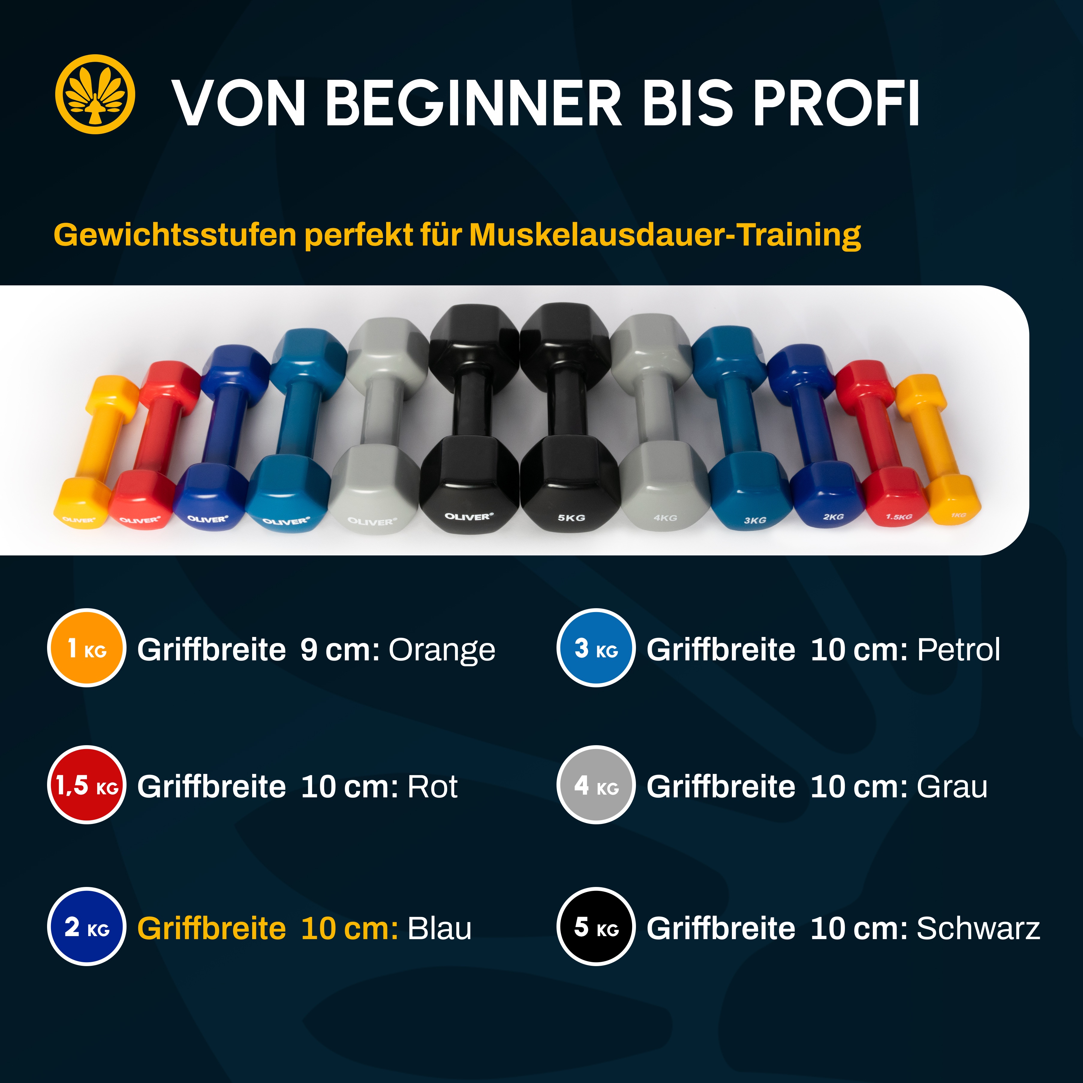 As an extension to pure dumbbell training, we recommend combined use with a Pezziball or the OLIVER Balance Pad; an OLIVER gymnastics mat can be used as a high-quality base.