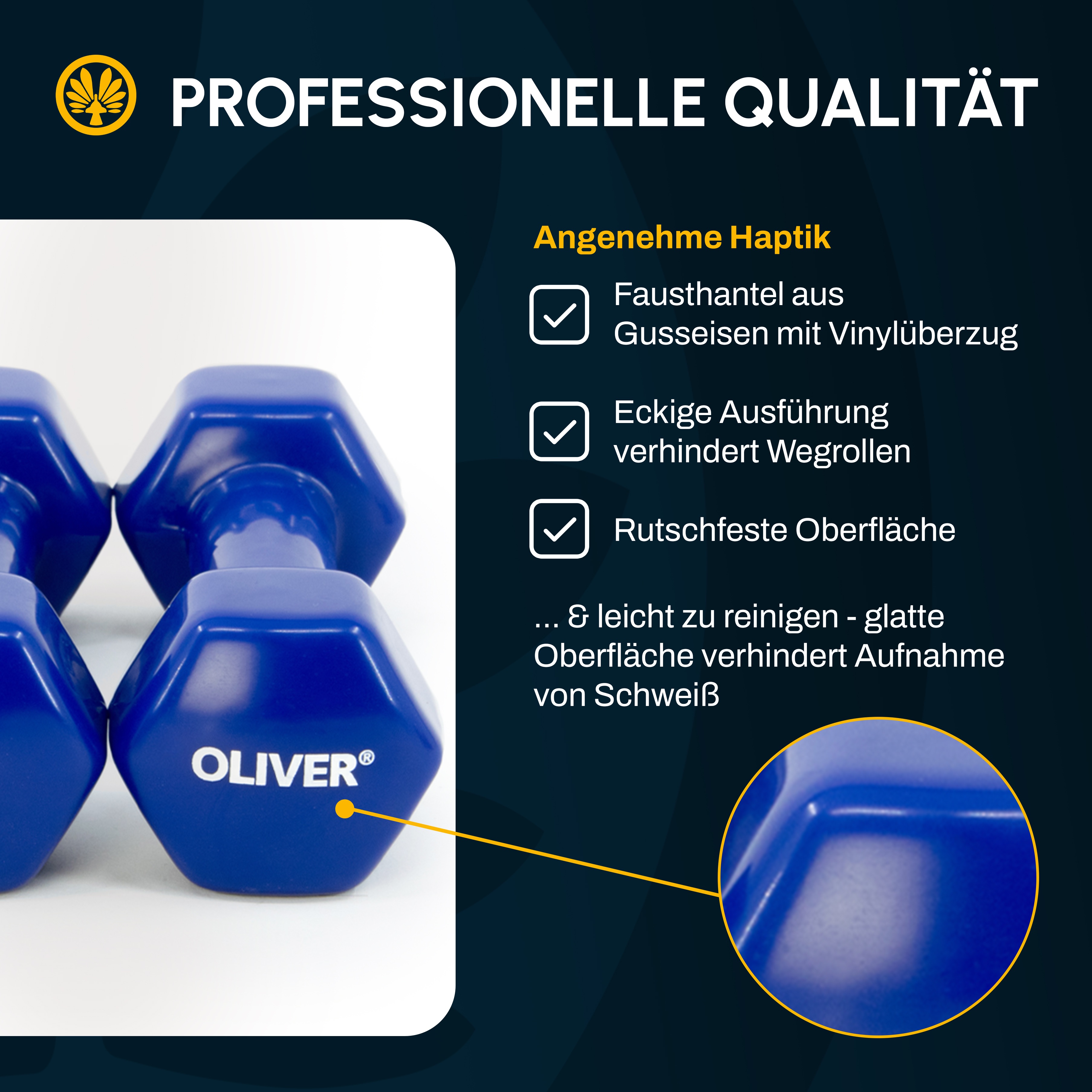 High-quality vinyl dumbbell set of 2 in revised studio quality. OLIVER vinyl dumbbells - they are and remain simply the epitome of fitness equipment.
