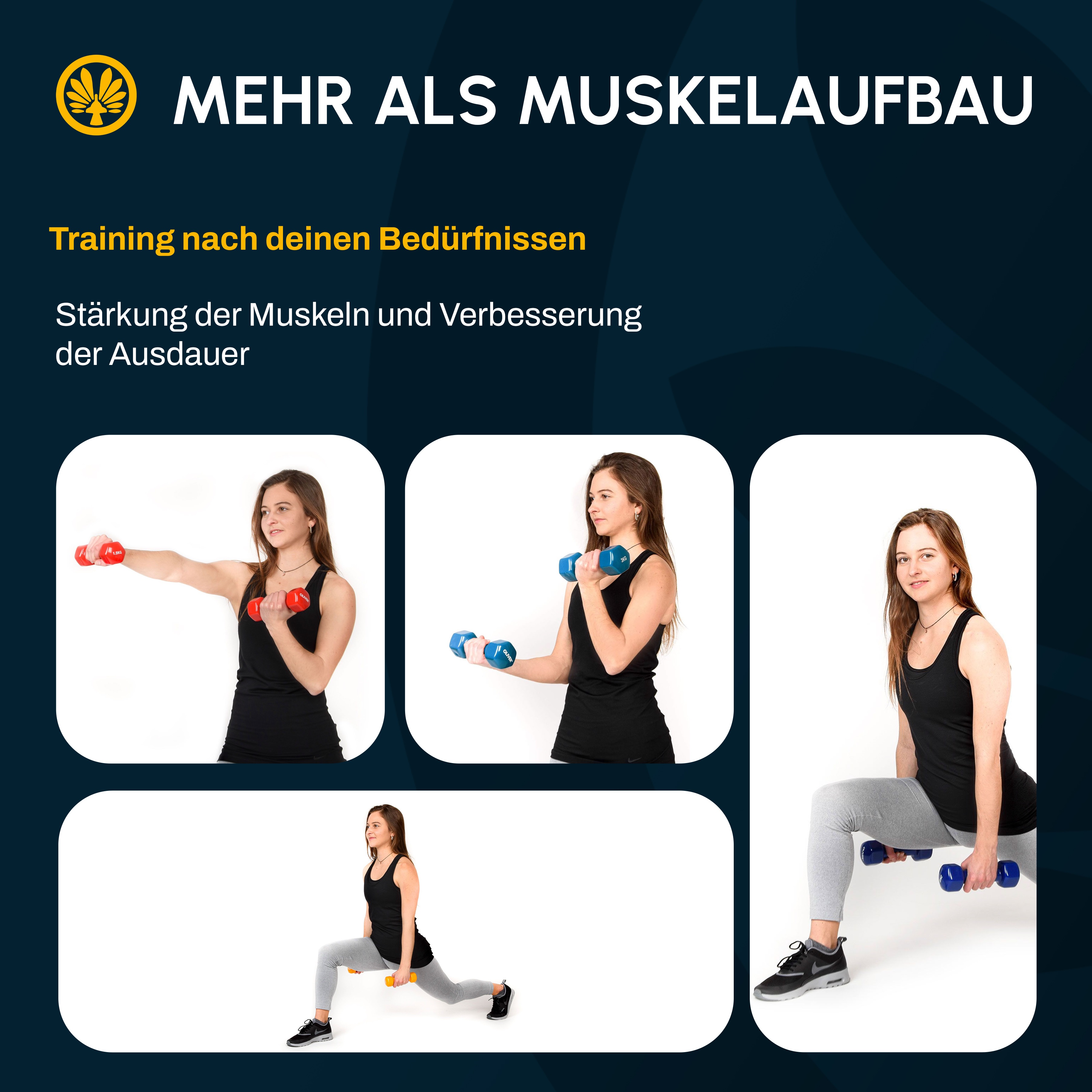 Muscle training and muscle building in fitness, aerobics, rehabilitation and therapy.