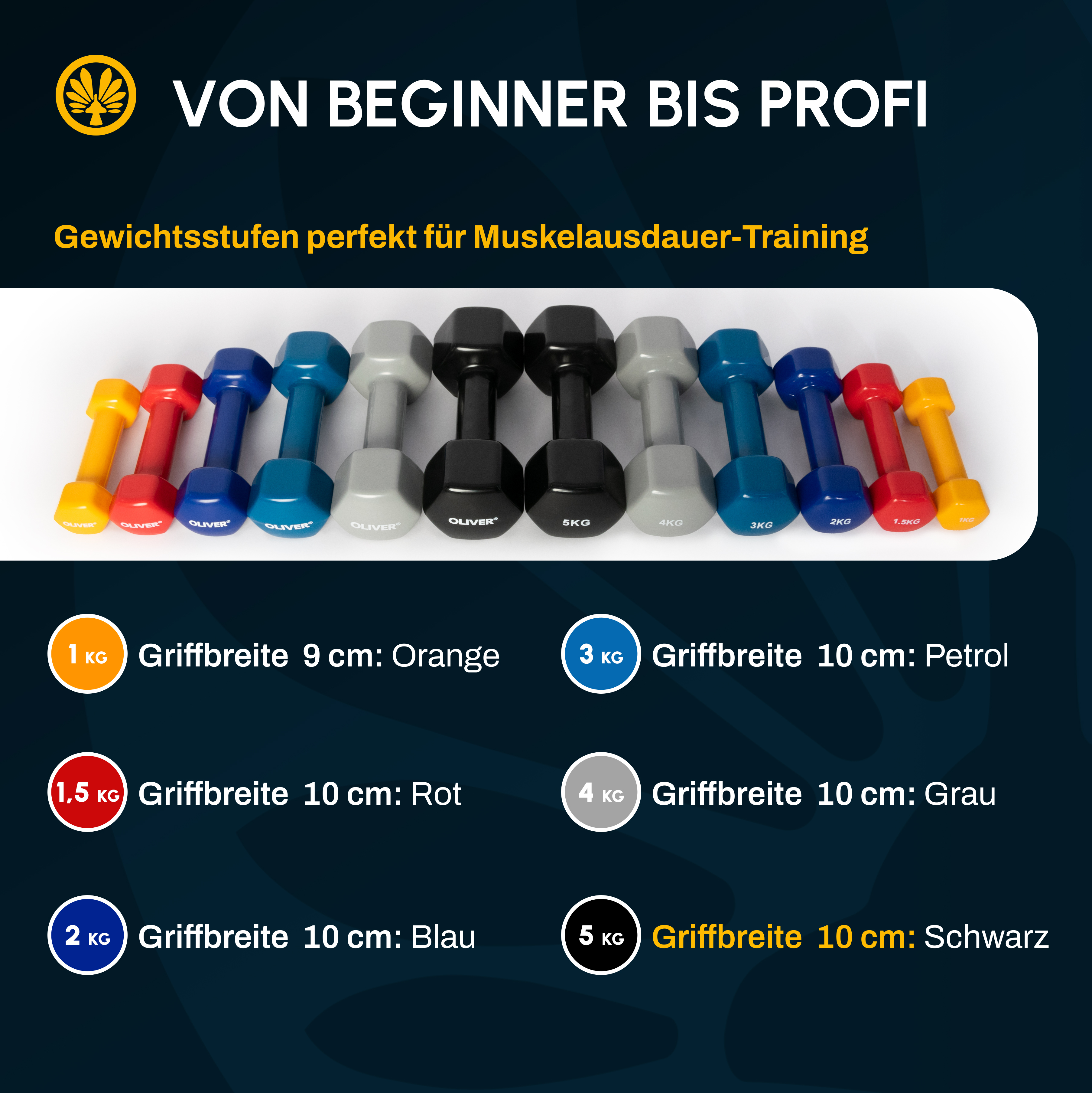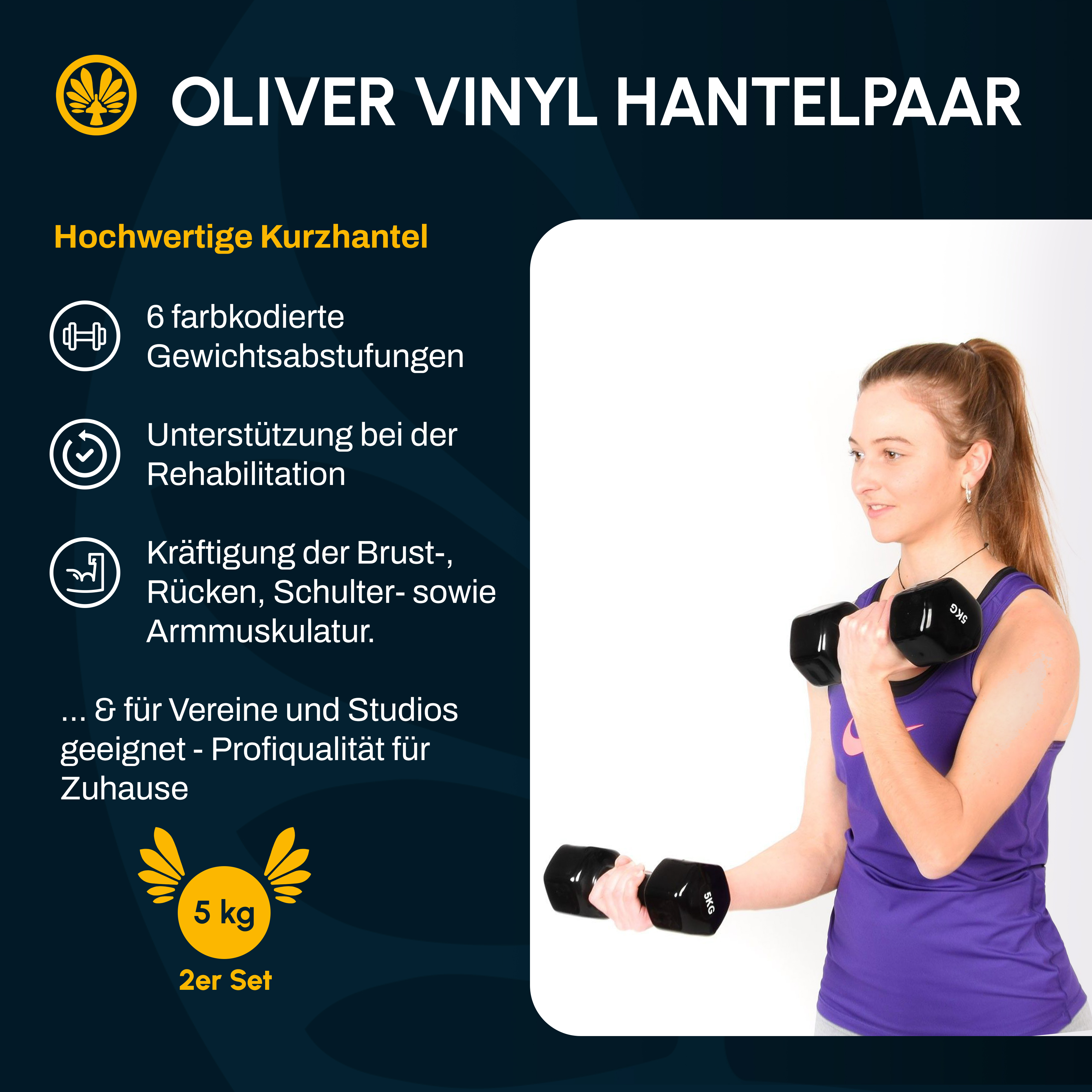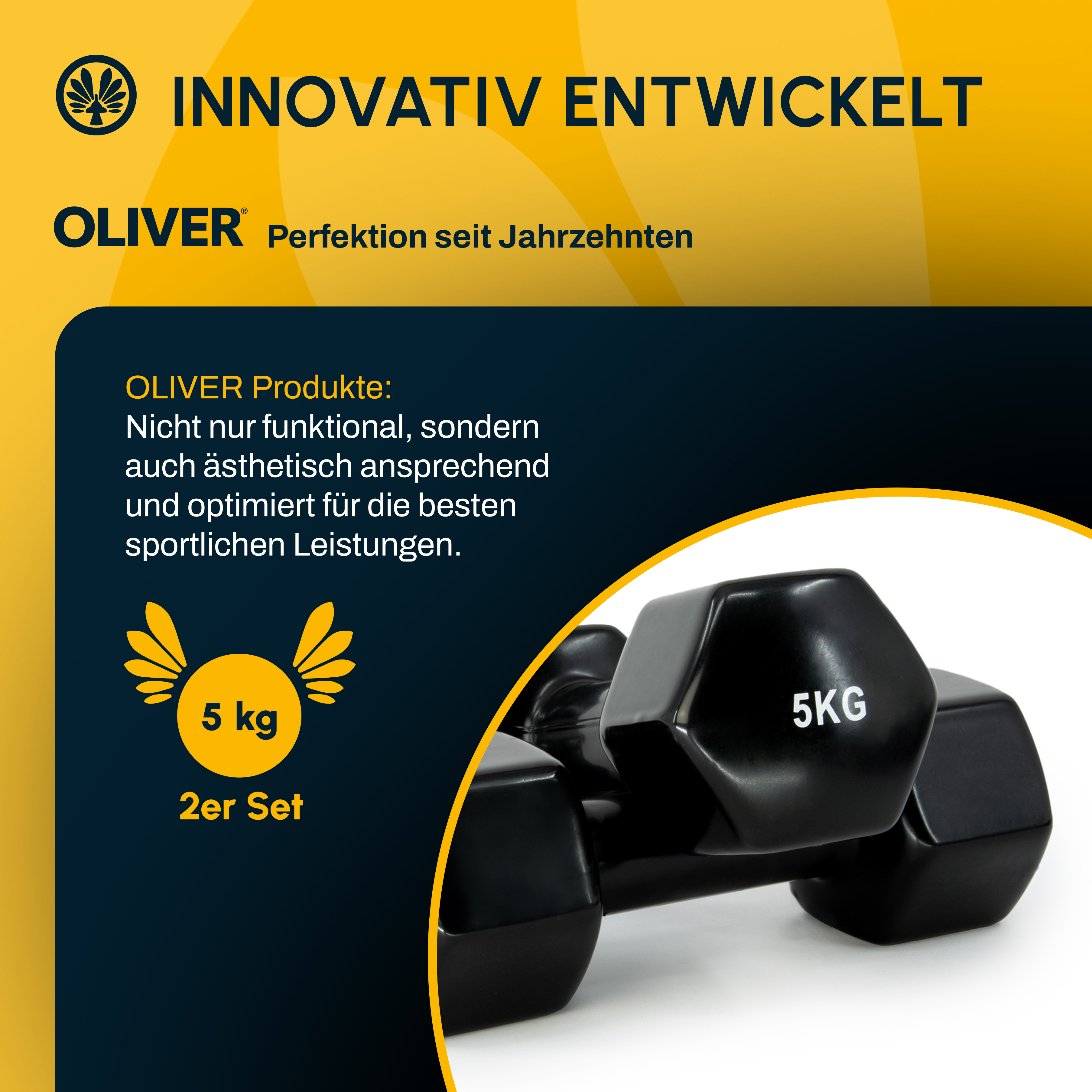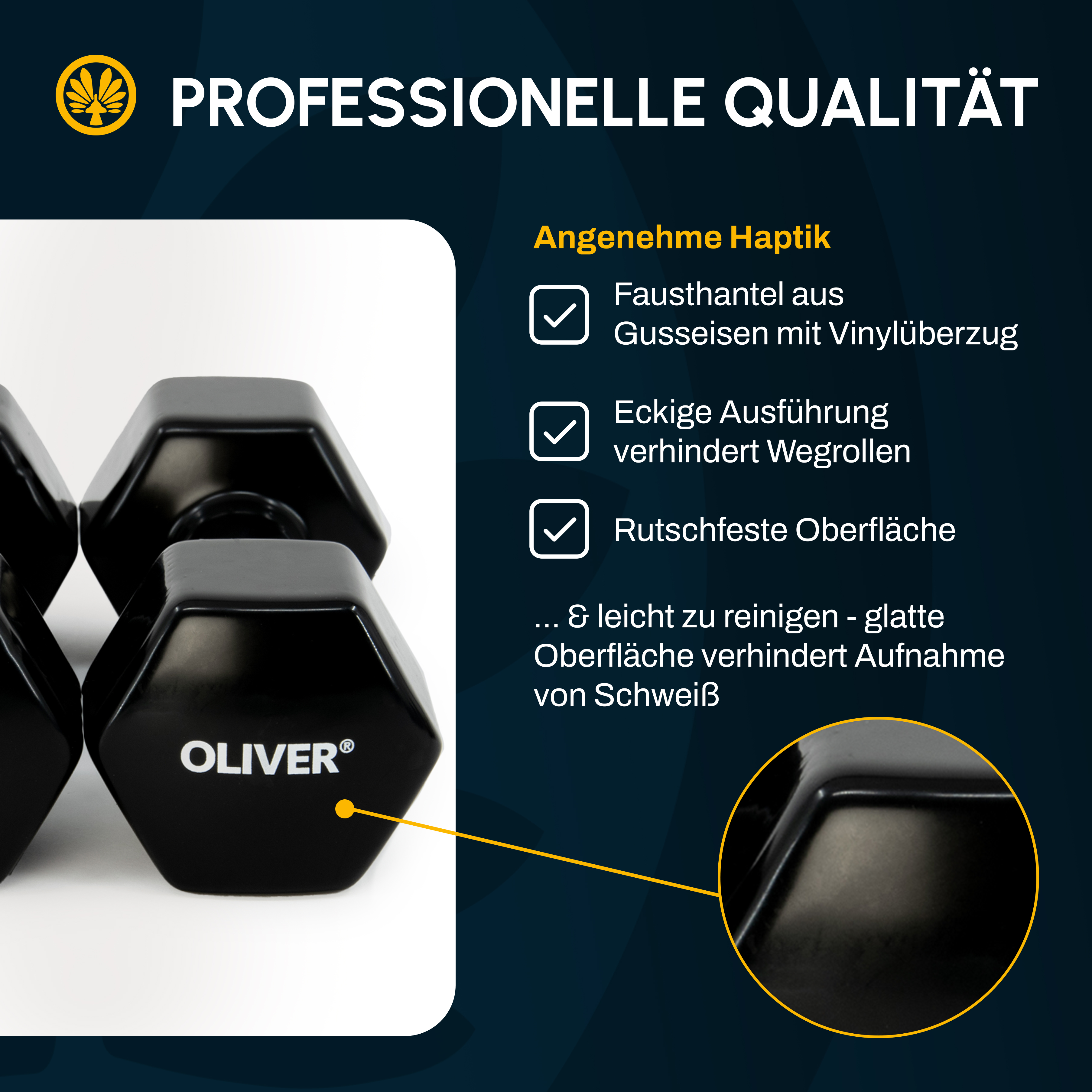 High-quality vinyl dumbbell set of 2 in revised studio quality. OLIVER vinyl dumbbells - they are and remain simply the epitome of fitness equipment.