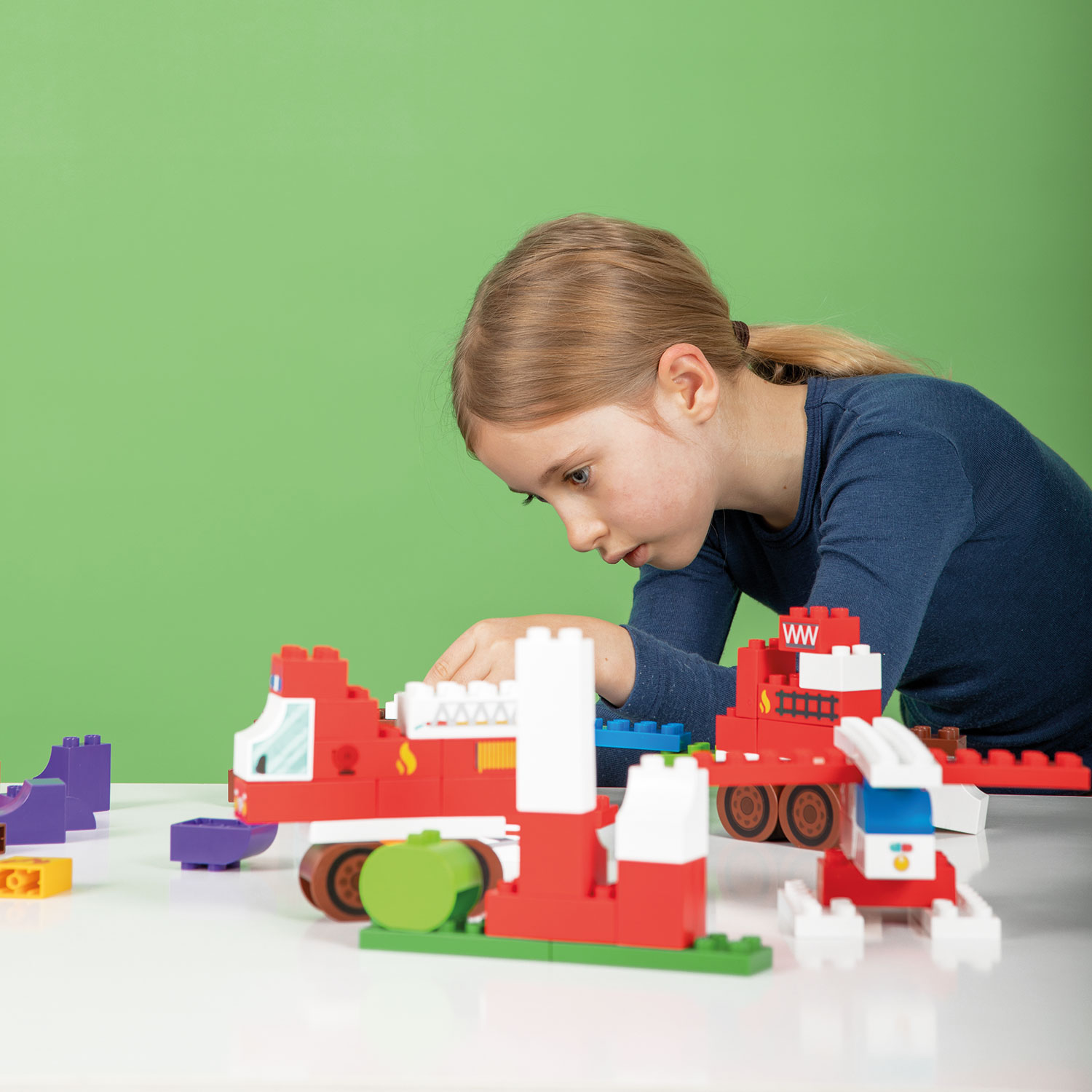 Sets zusammen enthalten 112 Teile und jeweils 4 Baukarten. Mit dem Set