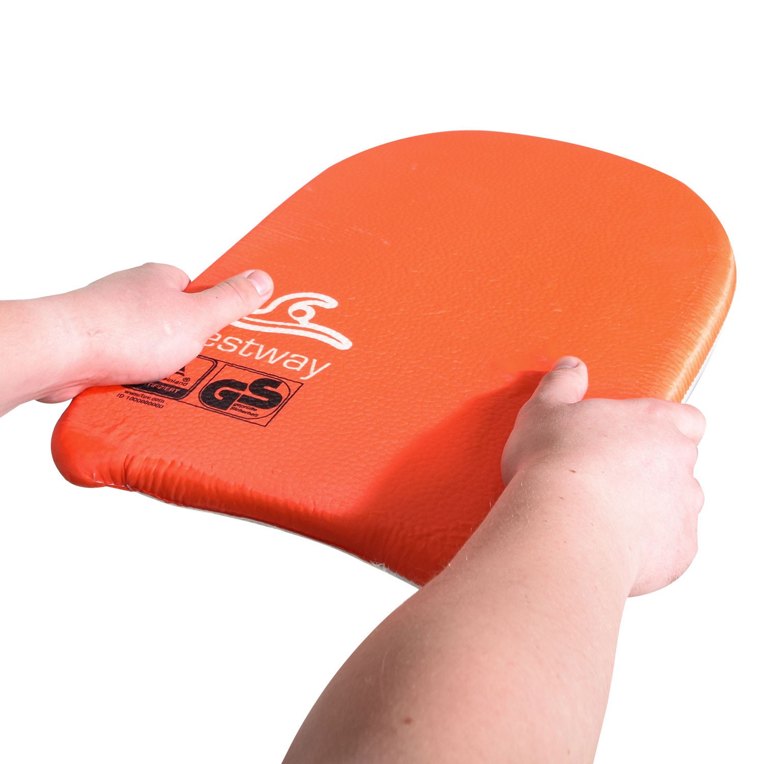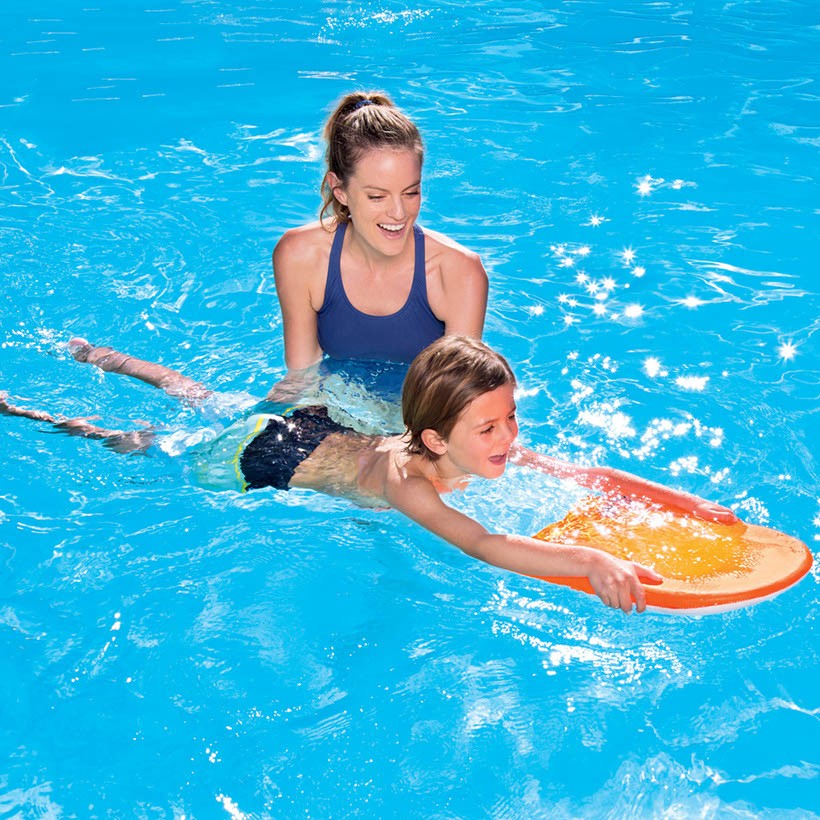 Das Schwimmbrett aus der 'Safe-2-swim'-Serie von Bestway gleitet durch seine hydrodynamische Form (abgeflachte Spitze) sanft durchs Wasser.