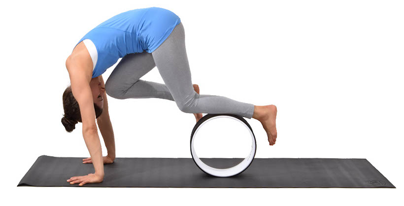 Das Yoga-Rad lässt sich ideal in die Yoga-Übungen integrieren, so kann zum Beispiel optimal auf die Brücke (also die Übung Chakrasana) vorbereitet werden.