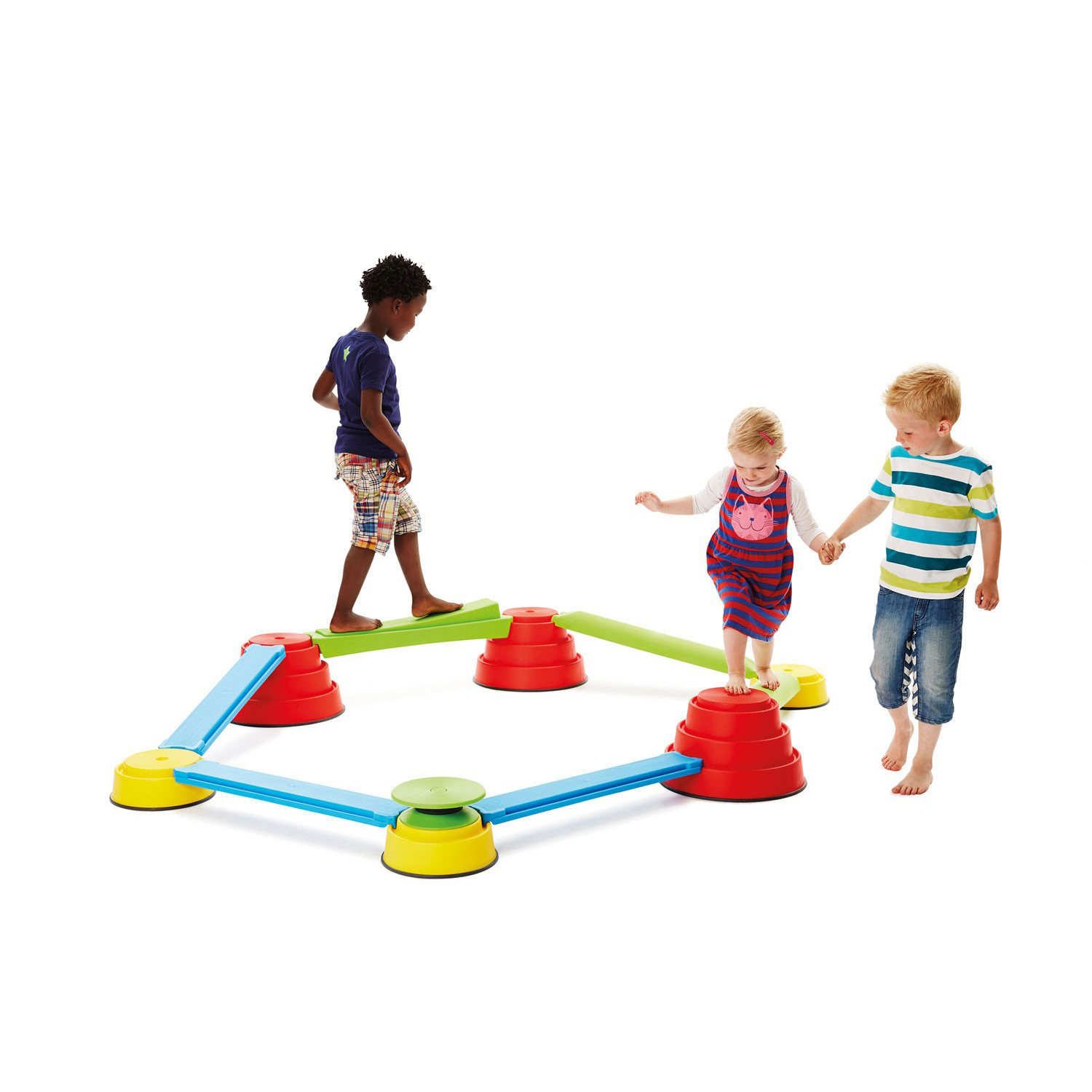 Build N' Balance® ist ein spannendes und anspruchsvolles Balancier-System, bei dem die Elemente auf verschiedenste Art und Weisen miteinander kombiniert werden können. Dadurch lässt sich der Schwierigkeitsgrad variieren und den Kindern sind beim Bauen von Balancierbahnen und Balancierlandschaften keine Grenzen gesetzt.