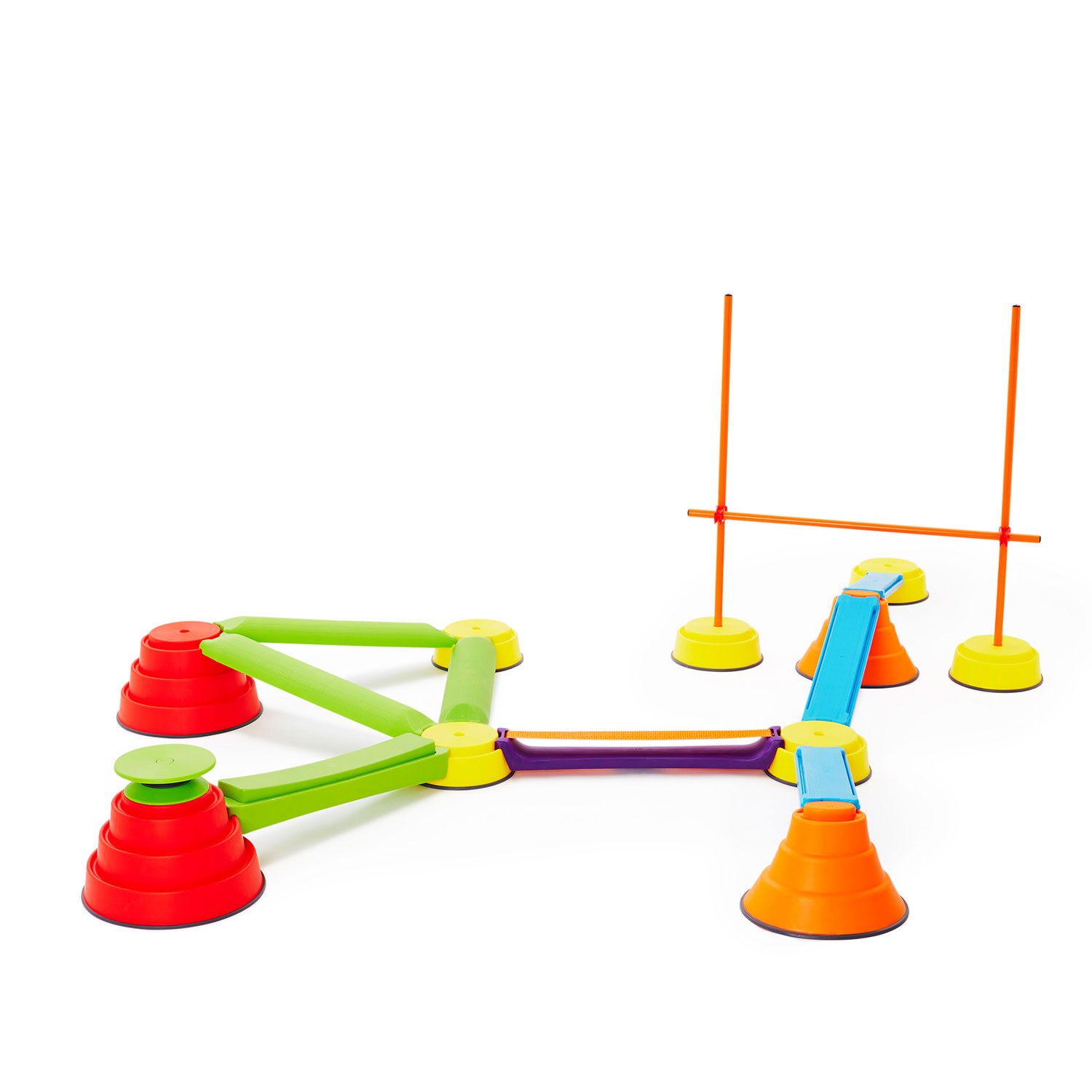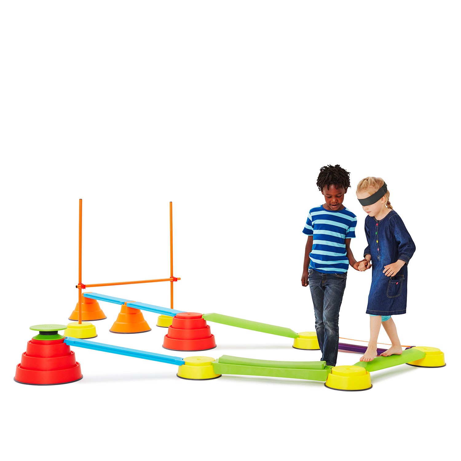 Das Build N' Balance® Set 'Large' enthält Elemente zum Bau eines richtig großen Balancierparcours, das Set umfasst neben 16 Build N'Balance Elementen noch eine weitere Herausforderung, die weitere Motorikfähigkeiten den Kindern abverlangen.