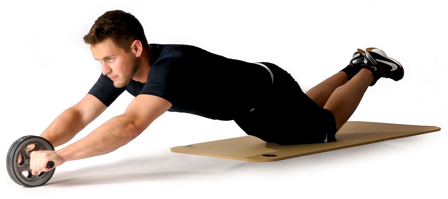 Das Duo-Wheel ermöglicht kontrollierte Vorwärts- und schräge Roll-outs. Für Einsteiger empfiehlt sich die kniende Variante; Fortgeschrittene steigern den Bewegungsradius oder nutzen diagonale Roll-outs. Eine weiche Unterlage (z. B. Kniepad/Matte) schont die Knie.