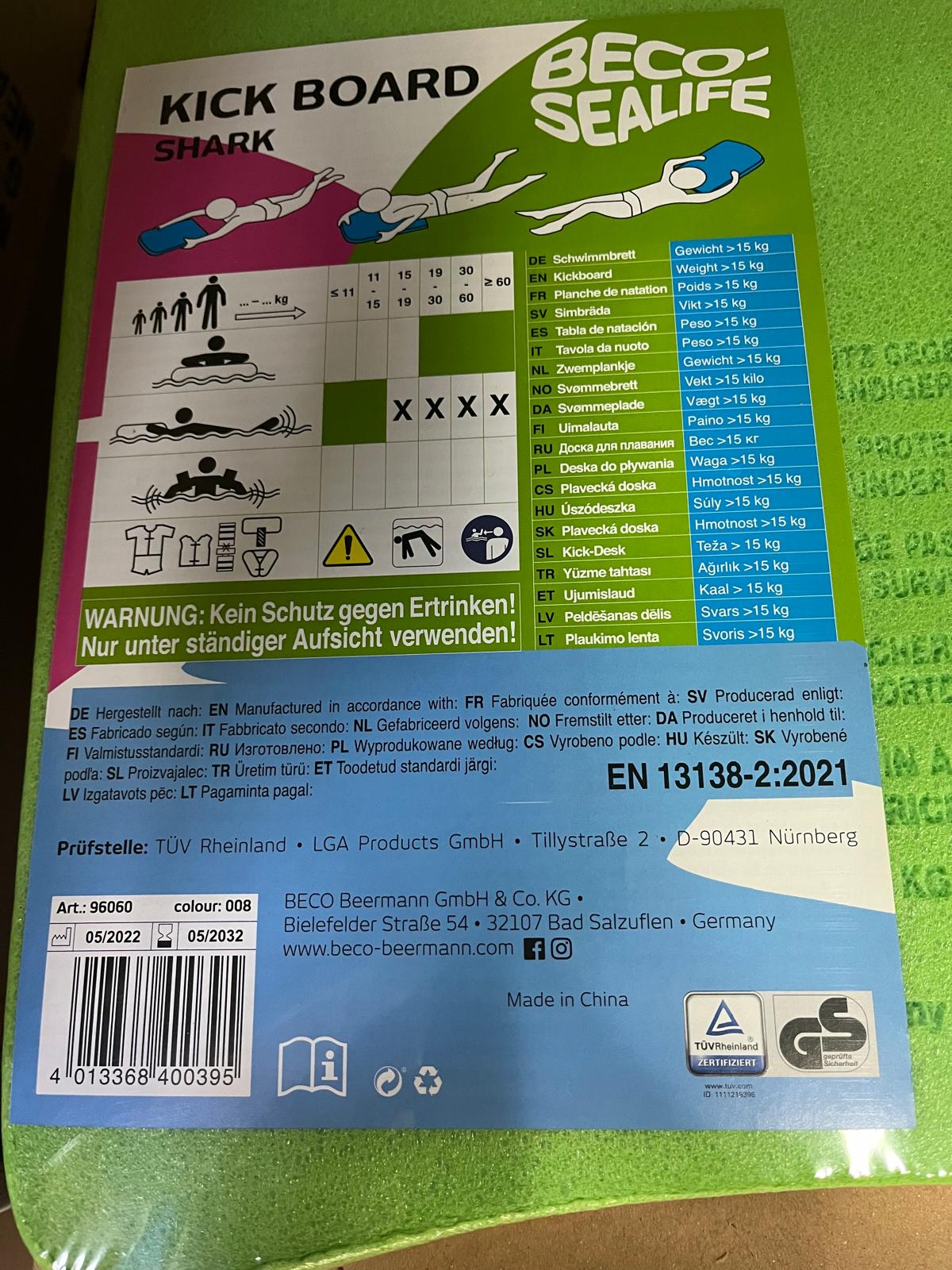 Hinweis: Schwimmbretter sind Schwimmhilfen, aber sie können nicht vor Ertrinken schützen, auch nicht im seichten Wasser. Ungeübte und Nichtschwimmer sollten daher immer unter Aufsicht im Wasser sein.