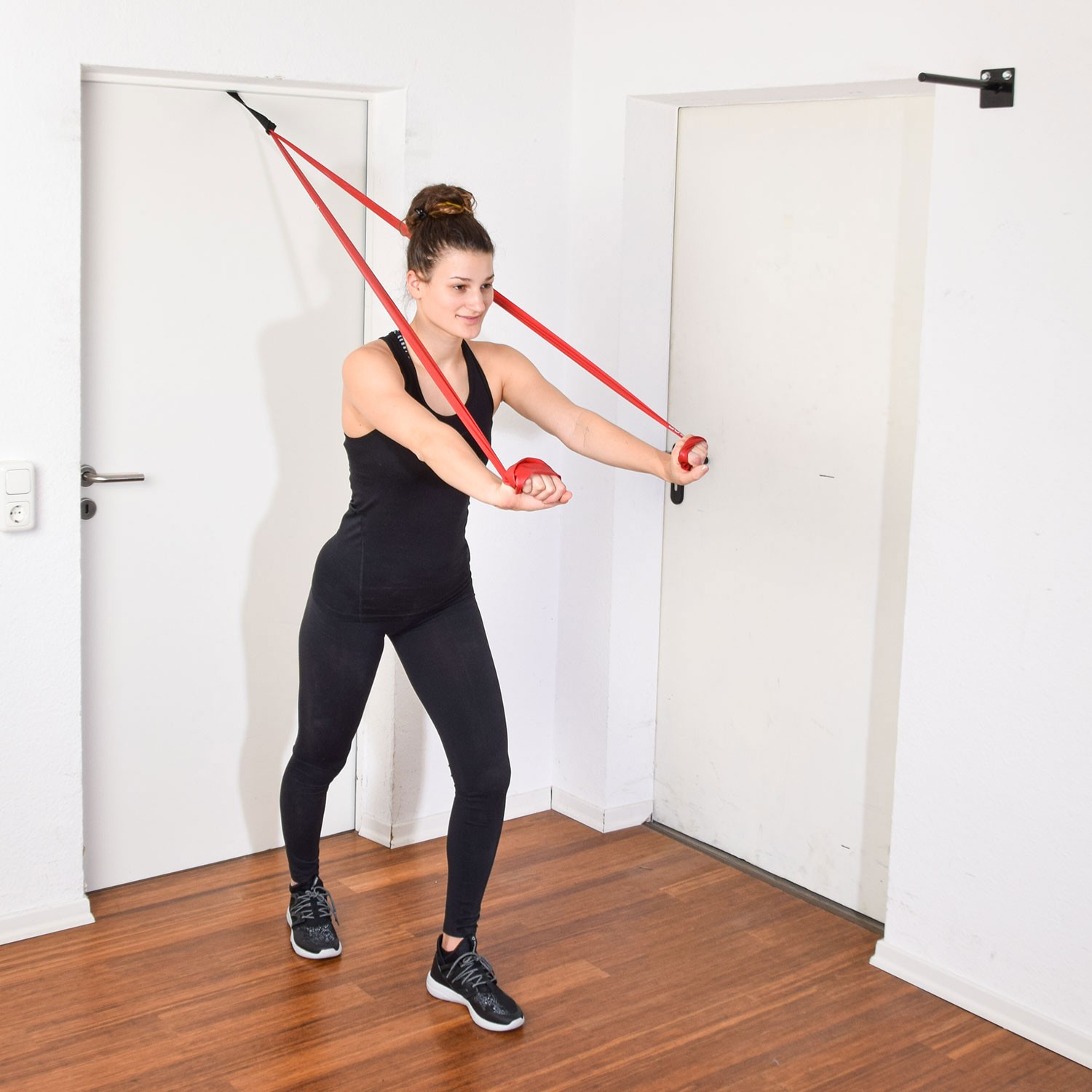 Erweitere mit Zubehör dein Übungsspektrum: Erstelle mit den Bodyband Clips ganz einfach und schnell Loops oder arbeite mit der Hilfe eines Türankers, der einfach nur in die Tür geklemmt werden muss - sei einfach kreativ.