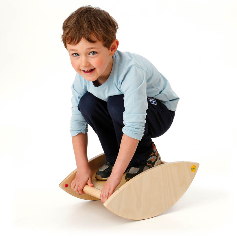 Durch die zwei unterschiedlichen Krümmungen der Seitenteile kann der Rocky Rocker für einfache und schwierige Übungen eingesetzt werden. Er ist so gestaltet, dass keine Nägel oder Schrauben verwendet wurden.