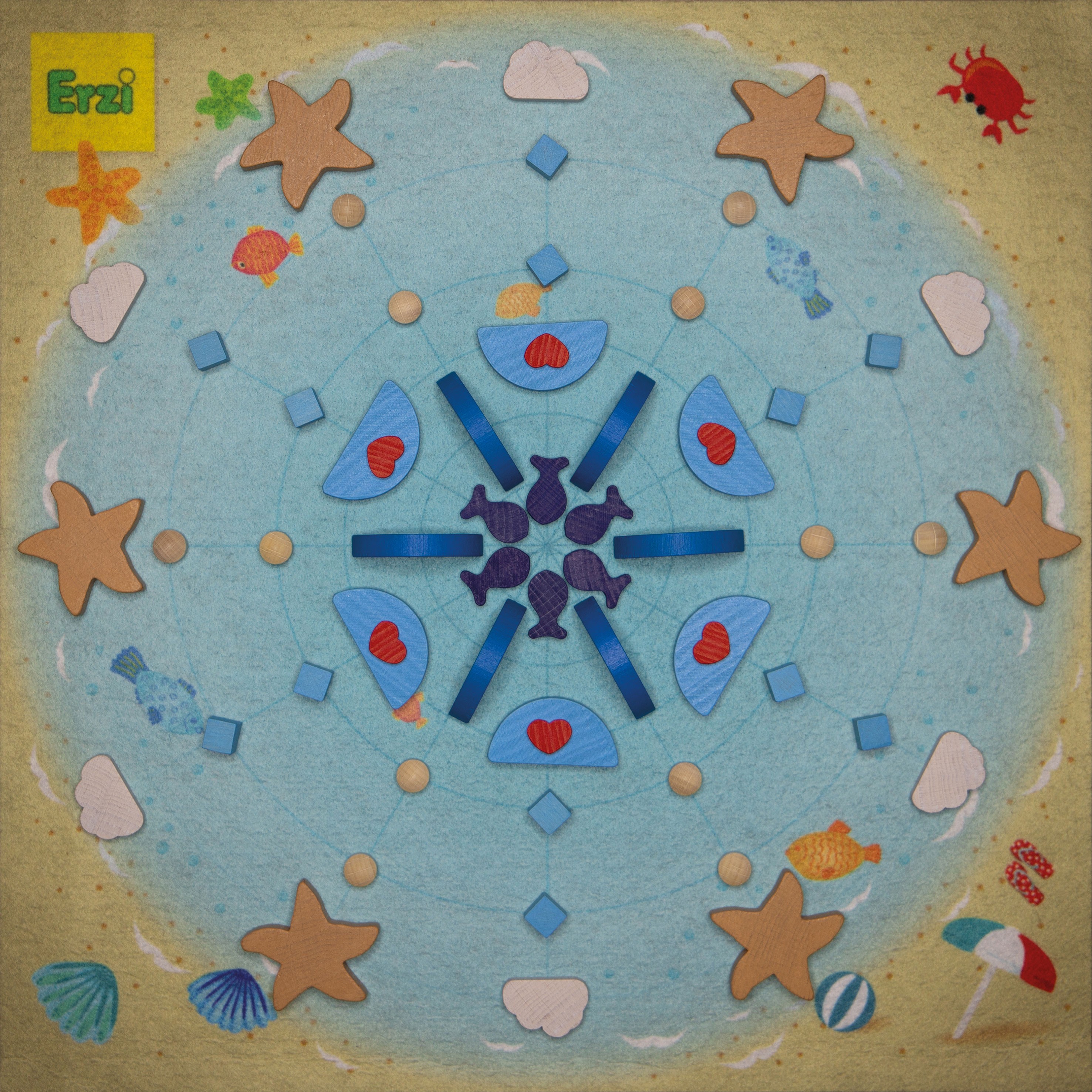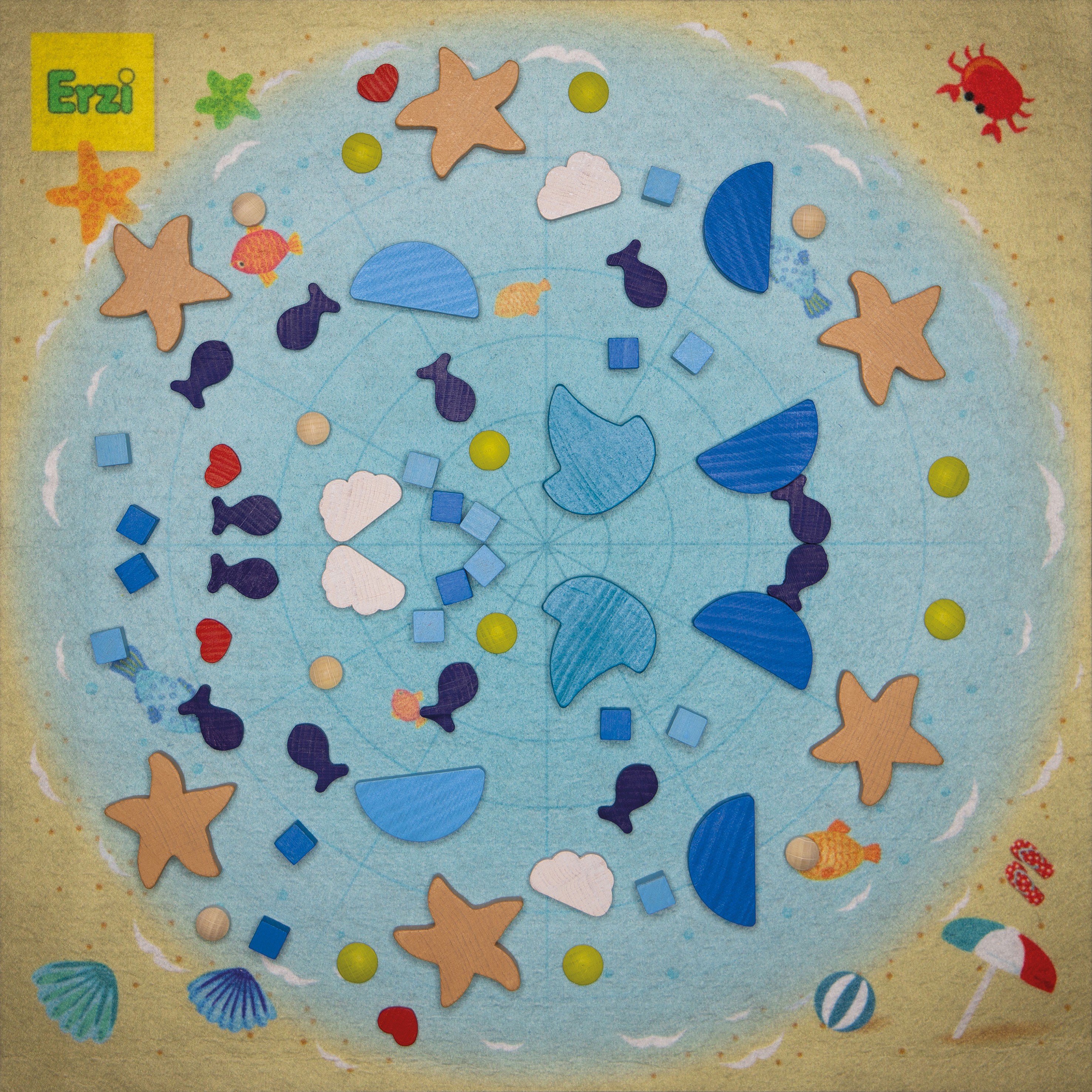 Verschiedene Formen und frohe Farben - fangfrisch aus dem Meer - laden zum ausdauernden Legen von unendlich vielen Mandalas ein. Im Set enthalten ist eine bunt gestaltete Spielmatte mit einem feinen Liniennetz, das beim gleichmäßigen Auflegen hilft.