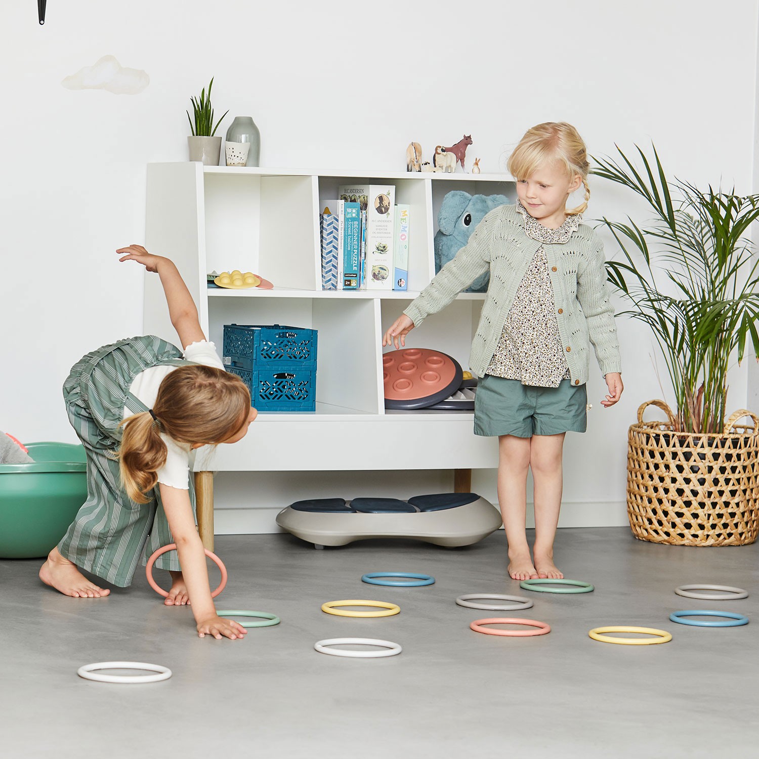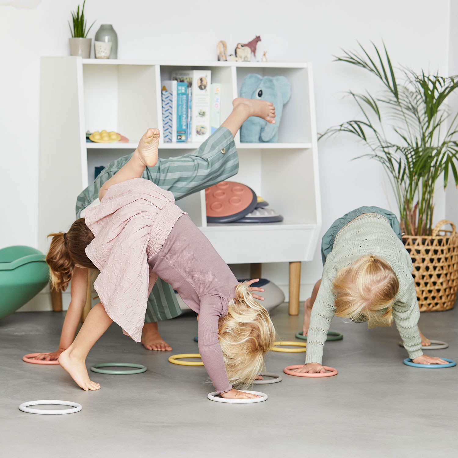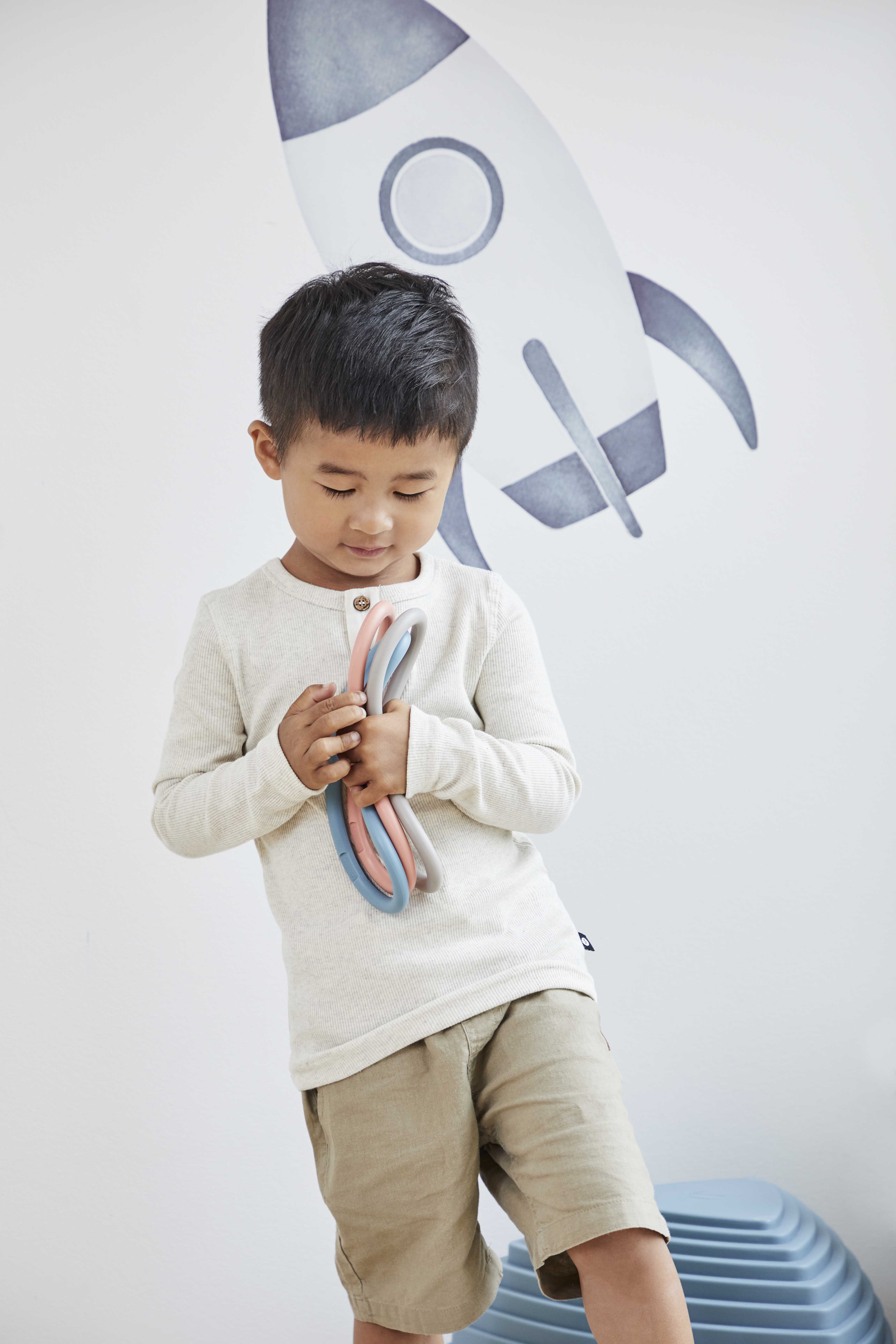 Die schönen nordischen Farben und die angenehme Haptik versprechen spielerisch Koordination und Bewegungsabläufe zu trainieren. Die Ringe selber sind elastisch und nicht starr, sondern genau so flexibel, wie sie sein sollten um 'die Form zu wahren'.