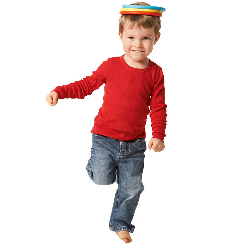 Diese schicken und farbenfrohen Activity Rings sprechen Kinder und auch Erwachsene jeden Alters an. Sie regen zu zahllosen Aktivitäten an, wie z. B. im Kreis tanzen, auf Zehenspitzen hintereinander in die Ringe steigen, mit Ringen auf dem Kopf balancieren oder an Armen und Beinen jonglieren, sich Ringe zuwerfen, mit Ringen um die Beine versuchen zu hüpfen, Figuren bauen und vieles mehr, der Phantasie sind keine Grenzen gesetzt.