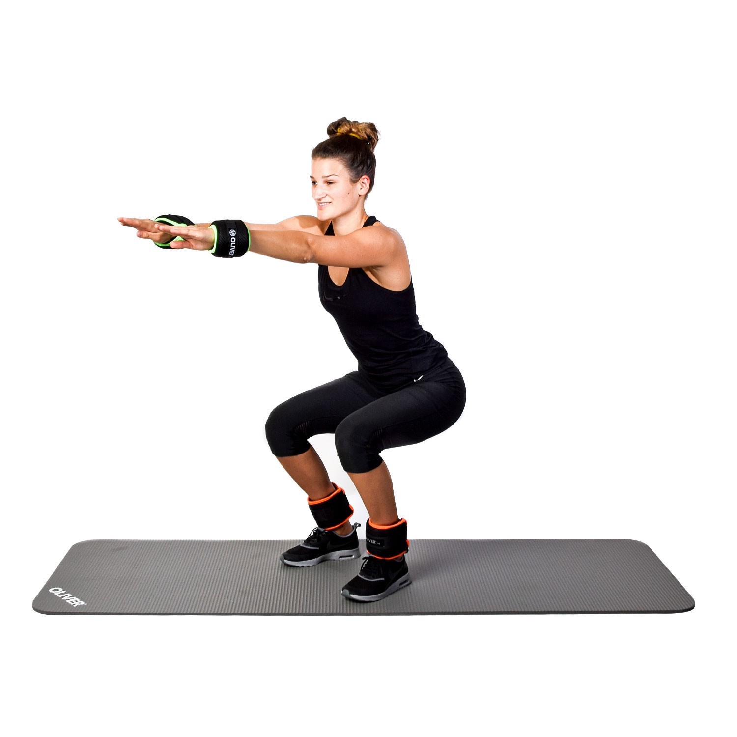 Bitte beachte: Die leichteren Gewichtseinheiten lassen sich komfortabel an Hand- oder Sprunggelenk fixieren. Die schwereren Gewichtseinheiten sind relativ groß, daher: Abhängig vom jeweiligen Arm- bzw. Beinumfang empfehlen sie sich hauptsächlich als Fußmanschetten.