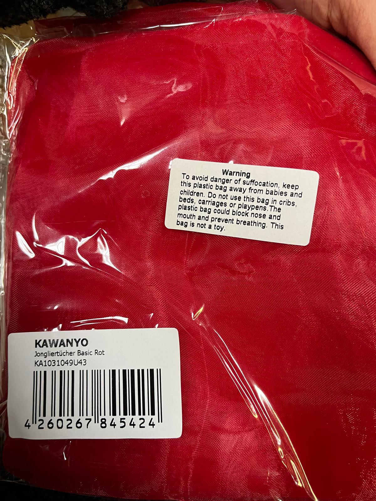Die qualitativ hochwertigen Jongliertücher in 4 Basic-Farben - Rot, Grün, Blau und Gelb - sind beliebt bei Jung und Alt.